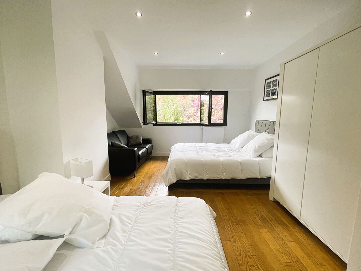 Entre Centre Ville et RER A, au calme et à l'abri des regards. Terrain de 360m2. Au premier niveau : belle pièce de vie lumineuse avec cuisine aménagée et équipée sur mesure, grandes baies vitrées avec accès terrasse et jardin. Une chambre avec salle d'eau et WC. Au second niveau : 3 chambres, dressing et rangement, 2 salles d'eau, une salle de bain et WC. Au dernier niveau, espace de jeu, une chambre avec terrasse. Un DUPLEX INDEPENDANT avec terrasse. SOUS SOL TOTAL de 140m2 avec grand garage, chaufferie, local technique ascenseur et caves. Un ascenseur en plus des escaliers desservant chaque niveau !