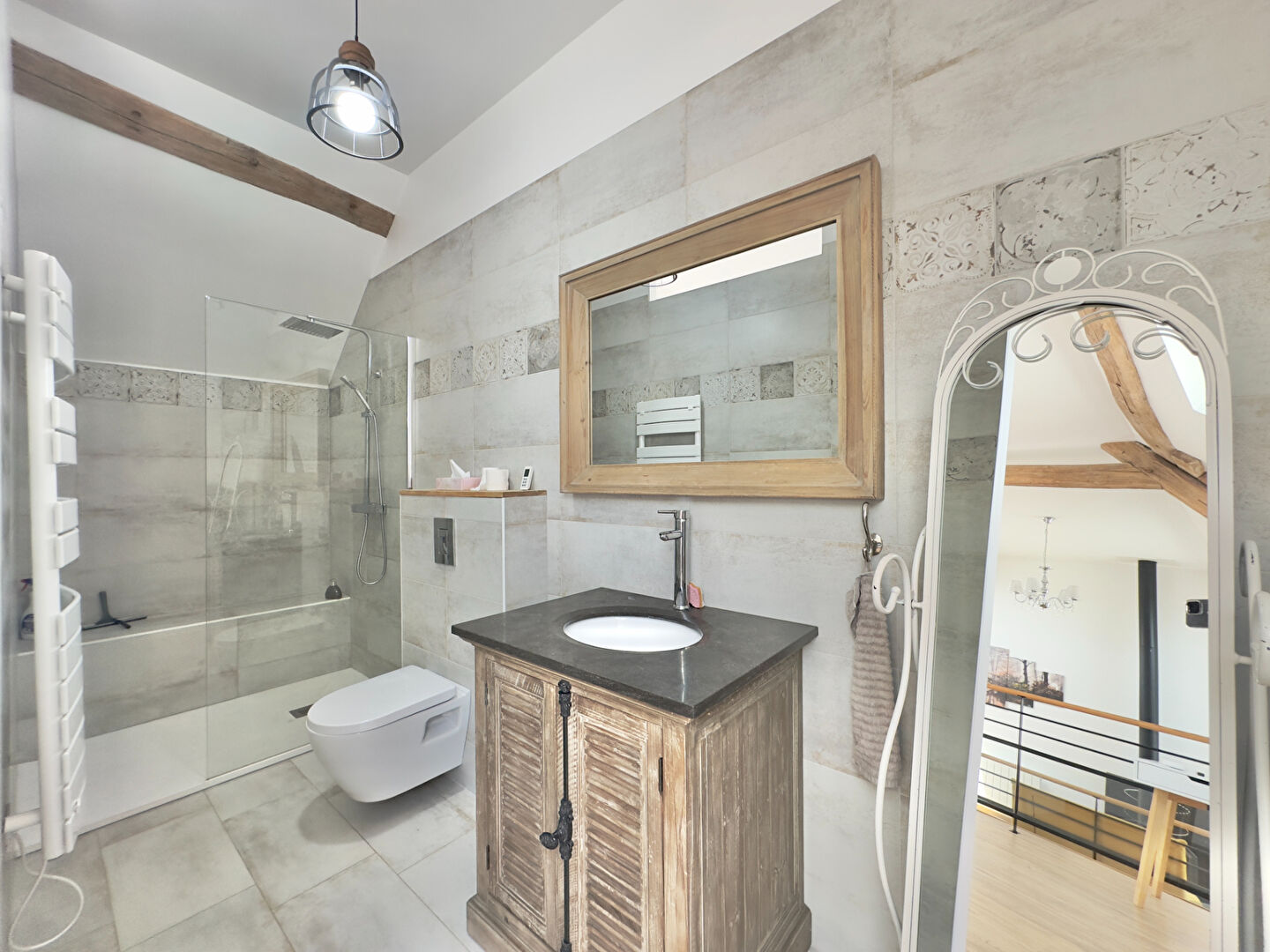 A découvrir sans attendre, ce magnifique corps de ferme offrant un cadre authentique et plein de charme, idéal pour un projet familial, locatif ou de gîtes. Situé sur un terrain de 1311 m², il réunit plusieurs habitations déjà aménagées ainsi qu'un beau potentiel d'agrandissement grâce à ses dépendances. La propriété se compose de : Une maison principale : Charmante et chaleureuse, elle offre un séjour lumineux, une cuisine aménagée et équipée et, à l'étage, deux grandes chambres ainsi qu'une salle de bain familiale. Un appartement duplex entièrement rénové : D'un style moderne avec une belle hauteur sous plafond, il peut accueillir deux chambres et séduira par son confort et sa luminosité. Un second petit appartement : A aménager selon vos envies (cuisine et salle d'eau à créer), idéal pour un studio indépendant, un espace professionnel ou locatif. Une grande grange à rénover : Parfait pour un atelier, un projet d'agrandissement ou la création d'un logement supplémentaire. Deux boxs fermés pour garer deux véhicules. Un grand terrain à l'arrière : Espace vert offrant de multiples possibilités : jardin, piscine, potager ou espace détente. Atouts majeurs : Multiples habitations déjà existantes (idéal pour projet de gîtes ou investissement locatif). Gros potentiel d'extension avec dépendances à aménager. Cadre de vie paisible et authentique. Terrain spacieux permettant de profiter pleinement de l'extérieur. Une propriété rare qui saura séduire ceux qui recherchent du cachet, du volume et du potentiel pour un projet familial ou professionnel.