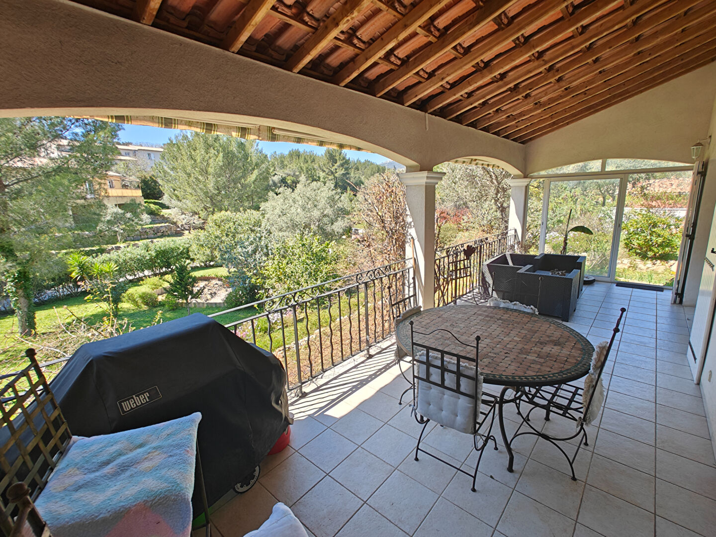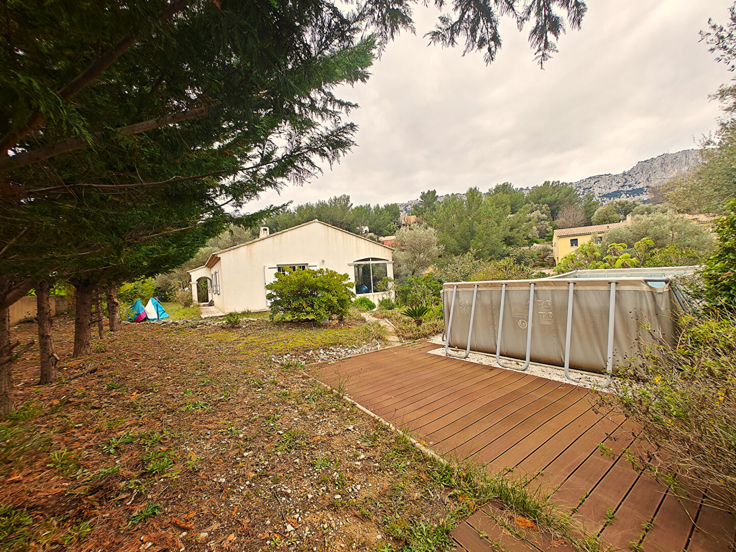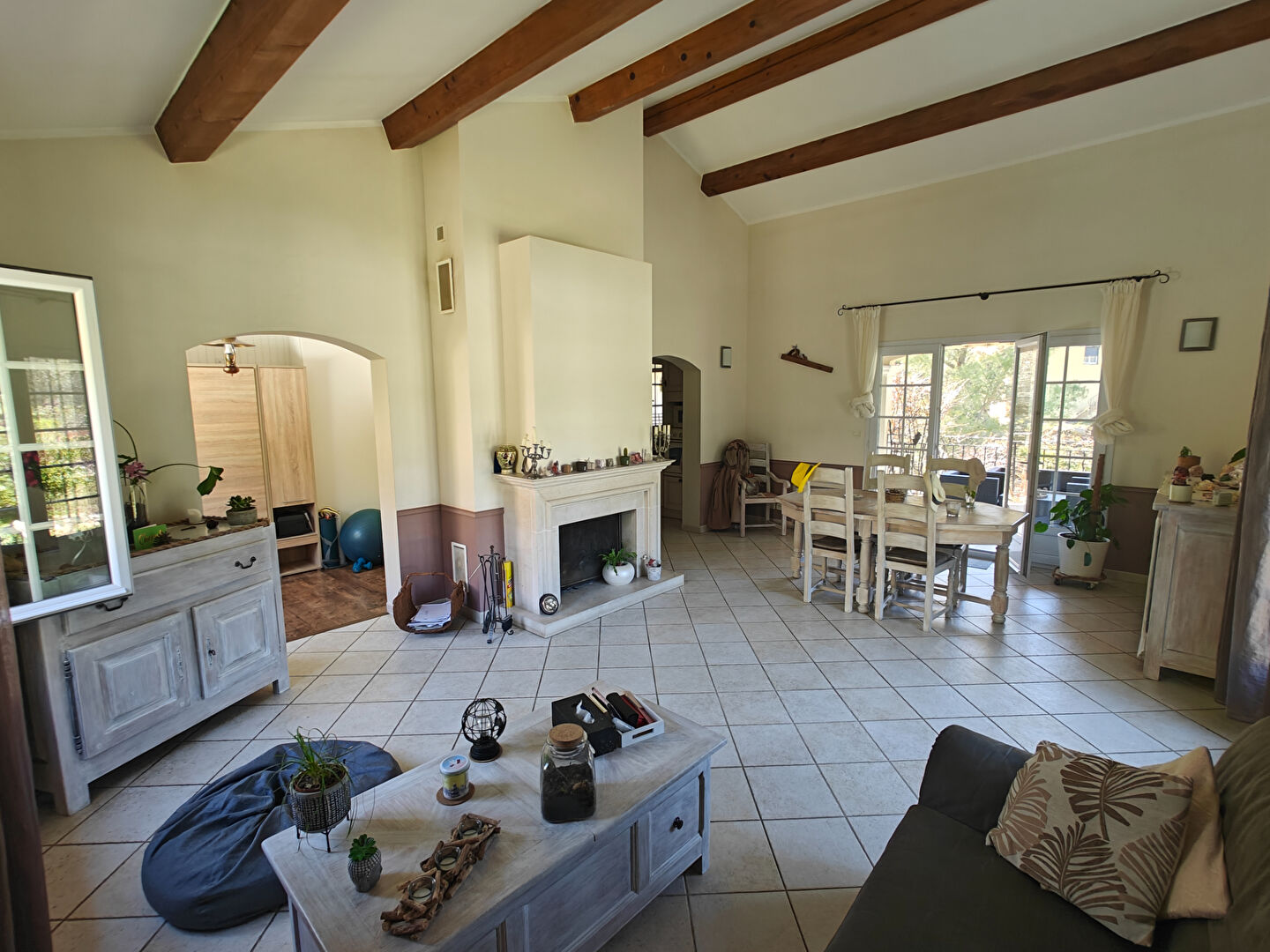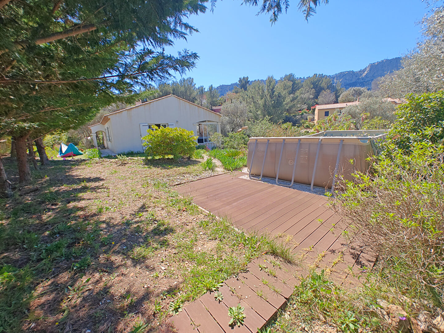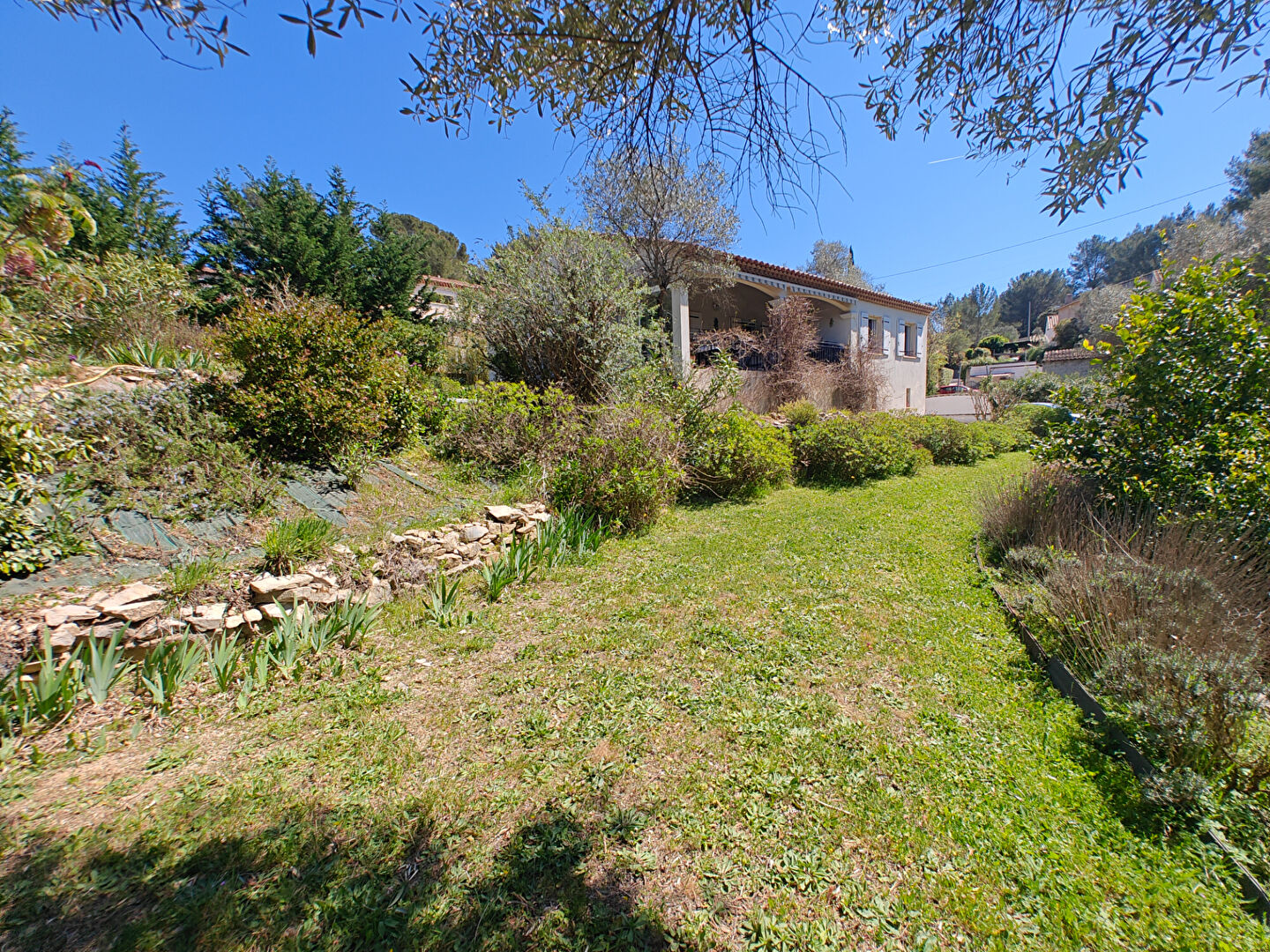 LA VALETTE NORD. Très belle villa de plain-pied 5 pièces 124 m² nichée dans un écrin de verdure avec terrain arboré de plus de 2000 m² piscinable, située dans un secteur recherché, au calme et non loin de toutes commodités. La maison se compose d'une belle pièce de vie lumineuse avec cheminée à insert, d'une cuisine indépendante équipée, de trois chambres dont une suite parentale avec dressing et salle d'eau, d'un bureau pouvant faire office de quatrième chambre, d'une seconde salle de bain et de deux WC séparés. Climatisation intégrée. A l'extérieur, une agréable terrasse couverte de 25 m² et un vaste terrain plat et verdoyant offrant de nombreuses possibilités d'aménagement, avec piscine ou agrandissement envisageables. Un garage grand de 70 m² carrelé avec eau et élec ainsi que plusieurs stationnements complètent le bien. Maison construite en 2008, idéale pour une famille recherchant calme, espace et confort tout en restant proche des commodités. A visiter sans tarder. Mazène SAADEH (EI) Agent Commercial - Numéro RSAC : - .