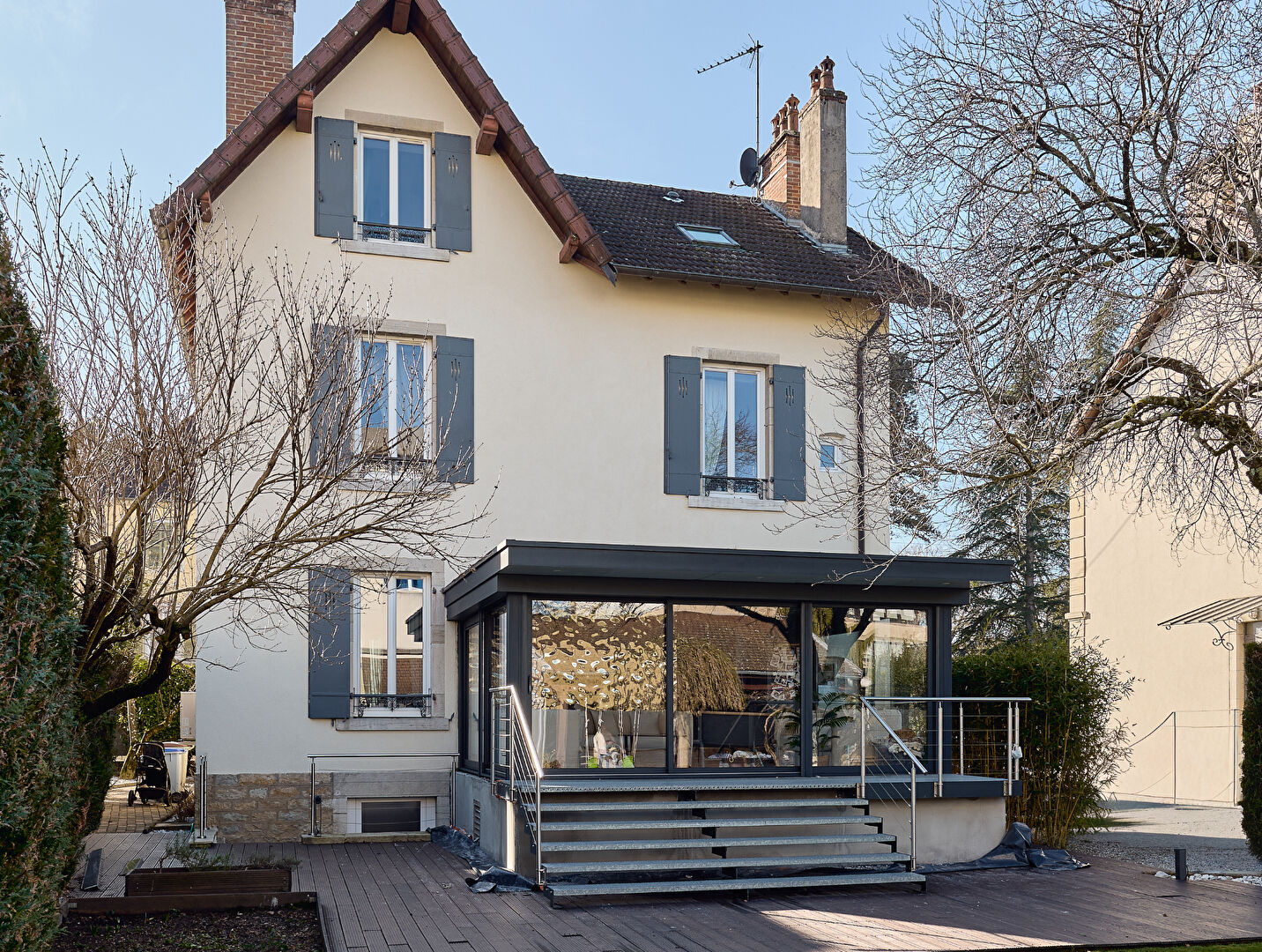 Maison de maître avec piscine à Lons le Saunier Au centre-ville de Lons le Saunier, cette maison de maître révèle une présence rare, à la fois affirmée et délicate. Derrière sa silhouette de pierre, l'atmosphère conjugue le charme des matières anciennes et une écriture intérieure plus contemporaine, précise, épurée. Le parquet patiné, les boiseries d'époque et les cheminées composent un décor authentique, rehaussé par de grandes ouvertures qui invitent la lumière à circuler librement. A l'extérieur, le jardin arboré dessine une respiration inattendue en coeur de ville, avec la promesse d'étés confidentiels autour de la piscine. Une adresse pour celles et ceux qui recherchent une maison de maître à Lons le Saunier, pensée pour la vie de famille et les instants partagés. Écrire une vie contemporaine dans une maison de caractère Ici, l'ancien n'est jamais figé. Il se laisse lire dans les boiseries conservées, dans le dessin des portes anciennes, dans la noblesse du parquet qui accompagne les pas et donne le ton. L'architecture de cette maison de maître en centre-ville de Lons le Saunier affirme une vraie personnalité, portée par un escalier central qui structure les volumes et compose une circulation naturelle. Les pièces se répondent avec équilibre, entre espaces de réception et lieux plus intimes. La lumière, omniprésente, traverse les ouvertures généreuses et souligne les matières, tantôt minérales, tantôt chaleureuses, dans une harmonie volontairement sobre. La rénovation récente privilégie une esthétique actuelle, sans jamais effacer la mémoire du lieu. La cuisine, propose une lecture moderne et fonctionnelle, dans une atmosphère design qui s'accorde avec la maison. Les aménagements sur mesure prolongent cette sensation de cohérence, comme une ligne claire posée sur une base patrimoniale. Les chambres, au nombre de quatre, offrent des proportions confortables, pensées pour accueillir une vie de famille exigeante ou un couple en quête d'espace. Une suite parentale vient parfaire l'ensemble, avec cette idée simple : habiter un lieu de caractère, sans renoncer au confort du quotidien. Un jardin arboré, rare privilège citadin Le terrain, plat et arboré, offre une respiration précieuse pour une maison de maître à Lons le Saunier située en centre-ville. Le jardin compose un décor vivant, changeant au fil des saisons, où la ville semble s'éloigner dès que l'on s'y attarde. Les feuillages dessinent des zones d'ombre, les perspectives s'ouvrent sur une vue tournée vers le vert, et l'ensemble conserve une sensation d'intimité. C'est un extérieur qui se vit, sans ostentation, avec cette simplicité élégante propre aux belles maisons de ville quand elles disposent d'un vrai espace de plein air. La piscine extérieure, protégée par un dôme, prolonge cette impression de confort discret. Elle installe un rythme estival, fait de baignades spontanées et de fins de journée plus lentes, dans un cadre rare au coeur de Lons le Saunier. La terrasse en bois devient un point de rendez-vous naturel, propice aux repas à l'ombre ou aux instants de lecture. Les stationnements complètent l'expérience avec fluidité, grâce au carport et à la cour gravillonnée. Une dépendance abrite un atelier, ajoutant une dimension pratique et inspirante, idéale pour les projets personnels, les loisirs ou l'organisation d'une vie familiale active. Lons le Saunier, une ville vivante au coeur du Jura Vivre dans une maison de maître en centre-ville de Lons le Saunier, c'est choisir un quotidien où tout se fait avec aisance. Les commerces, les écoles et les services s'inscrivent naturellement dans le rythme de la ville, sans contrainte, avec cette liberté propre aux adresses centrales. Le Jura apporte, lui, une profondeur de décor. On y retrouve une identité douce et authentique, entre culture locale, gastronomie, paysages préservés et une manière d'habiter plus attentive au temps. La ville conserve une dimension humaine, tout en restant connectée aux grands axes, ce qui renforce l'intérêt de cette localisation. Le territoire environnant ouvre un champ d'expériences variées. Les promenades prennent vite une allure plus naturelle, les reliefs se découvrent sans effort, et l'on passe facilement d'un centre urbain animé à des horizons plus ouverts. Le Jura se vit autant pour ses espaces que pour son atmosphère, faite de calme mesuré, de patrimoine et de lumière. Dans ce contexte, la propriété offre une position stratégique : un ancrage citadin, mais avec l'agrément d'un jardin et d'une piscine, comme un contrepoint végétal à la vie de centre-ville. Une adresse idéale pour conjuguer vie familiale, élégance et liberté. Avis de l'agence : Cette maison de maître à Lons le Saunier se distingue par une combinaison très rare : une adresse centrale, une architecture de caractère, et un jardin arboré avec piscine. La rénovation récente apporte une lecture contemporaine, tout en conservant les marqueurs essentiels de l'ancien, parquet, boiseries, cheminées. Sirine EL BEGGAR (EI) Agent Commercial - Numéro RSAC : 894149673 - BESANCON.