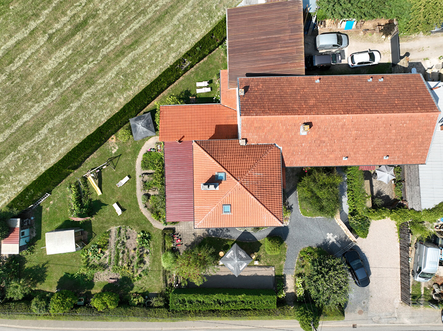 Maison individuelle atypique et coup de coeur offrant de très beaux volumes et un potentiel rare implantée sur un terrain plat et entièrement arboré de 1 200 m² elle développe une surface habitable de162 m² et se distingue par plusieurs annexes et en bonus exceptionnel une ancienne grange réhabilitée de 150 m² en salle de fêtes. Dès l'entrée l'atmosphère est chaleureuse et singulière la maison propose un salon-séjour parqueté traversant avec cheminée une cuisine équipée ouverte donnant accès à une pièce repas située en contrebas de quelques marches, une porte fenêtre permet l'accès extérieur à une terrasse couverte de 16 m² équipée d'un barbecue intégré et d'un four à Pizza. Un garage de 44m2 et un WC séparé complètent le rez-de-chaussée. A l'étage l'espace nuit se compose de trois grandes chambres à coucher parquetés, d'une salle de bain familiale avec baignoire balnéo, douche à l'italienne et double vasque, d'une buanderie indépendante ainsi que d'un second WC de nuit. Au second et dernier étage un grenier aménagé en quatrième chambre mansardé idéal pour un adolescent avec un petit grenier attenant faisant office de dressing/penderie. Le clou du spectacle de cette propriété est sa grange d'une surface de 150 m² accessible depuis l'intérieur ou l'extérieur de la maison offrant une très belle hauteur sous plafond avec poutres apparentes, la toiture a été remaniée en 2017 avec écran sous toiture permettant l'aménagement d'une salle de réception d'une salle des fêtes ou toute autre activité. A l'arrière de la grange une cour privative avec grenier sur plancher permet du stockage ainsi que le stationnement de six véhicules. En annexe supplémentaire d'anciennes écuries utilisés comme atelier ou zone de stockage ainsi que 3 caves. La propriété dispose d'un vaste jardin entourant la maison, entièrement arboré avec espace potager, terrain de pétanque, balançoire et allée desservant l'ensemble. Le système de chauffage par pompe à chaleur a été installé en 2022. A SAISIR, Coup de coeur assuré ! Les informations sur les risques auxquels ce bien est exposé sont disponibles sur le site www.georisques.gouv.fr