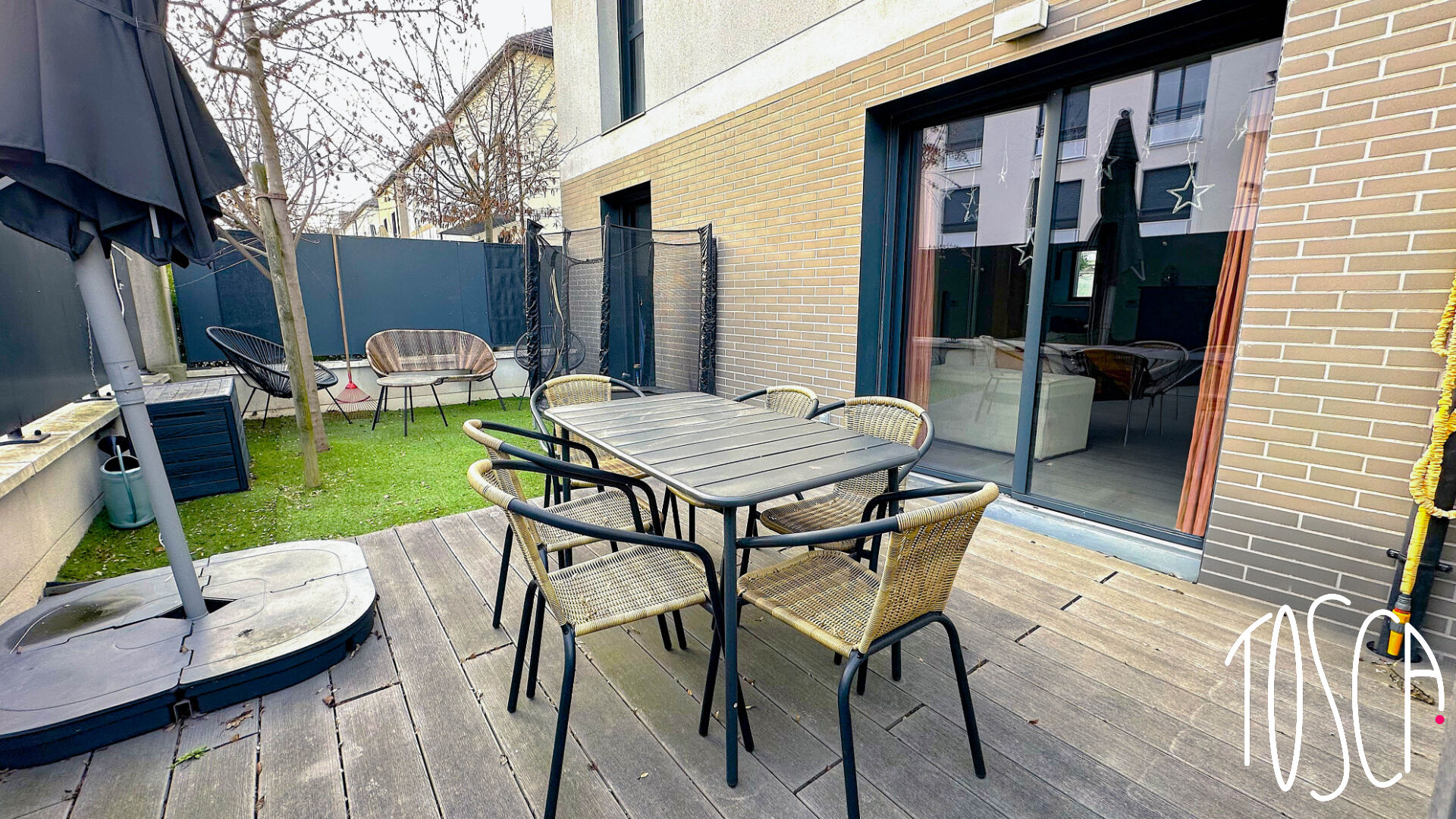Idéalement situé à deux pas des commerces, des transports et des établissements scolaires, TOSCA IMMO a le plaisir de vous présenter en exclusivité ce superbe appartement 3 pièces de 64 m², au sein d'une petite copropriété de 2019. Situé en rez-de-jardin, cet appartement ne nécessite aucun travaux et séduit par la qualité de ses prestations ainsi que par son bel espace extérieur, composé d'une terrasse et d'un jardin privatif, idéal pour profiter des beaux jours en toute tranquillité. Dès l'entrée, vous découvrirez un séjour lumineux, exposé plein Sud, avec une cuisine ouverte, aménagée et entièrement équipée, s'ouvrant directement sur l'extérieur, véritable prolongement de l'espace de vie et parfait pour les moments de détente ou de convivialité. L'espace nuit se compose de deux chambres confortables, d'une salle de bains avec espace buanderie, ainsi que de WC indépendants, offrant un agencement fonctionnel et agréable au quotidien. Une place de parking vient compléter ce bien et est incluse dans la vente. Vous l'aurez compris, cet appartement réunit confort, calme et emplacement privilégié, dans un environnement recherché. Ne laissez pas passer cette opportunité ! Contactez-nous dès maintenant pour organiser une visite. Réf Mandat n°1354. Honoraires d'agence inclus 5% du prix net vendeur à la charge de l'acquéreur. Le bien ci-avant désigné représentant les lots n°2 et 10 de la copropriété qui comporte 17 lots. La moyenne des charges courantes annuelles pour ces lots est de 2640 euros. Il n'existe pas de procédure de redressement sur ladite copropriété. Les informations sur les risques auxquels ce bien est exposé sont disponibles sur le site Géorisques. (5.00 % honoraires TTC à la charge de l'acquéreur.) Copropriété de 17 lots - dont 9 lots habitation. (Pas de procédure en cours). Charges annuelles : 2640 euros.