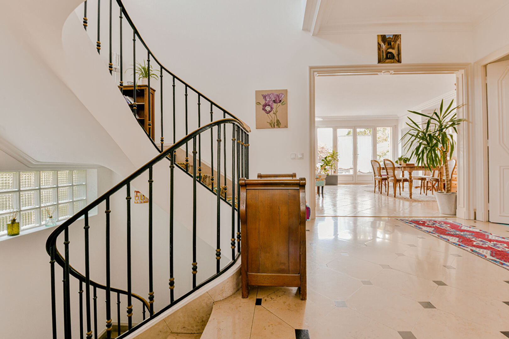 En limite de Sceaux à Chatenay-Malabry. Belle maison d'architecte de 282m² environ construite sur 3 niveaux à 7/8 minutes du RER Robinson et à environ 10 minutes à pied du parc de Sceaux, vous profiterez également des parcs arborés de la commune. Au rez-de-chaussée : une entrée avec grand vestibule dessert l'espace de vie principal 47m² environ et les 2 étages de vie au-dessus. Une autre entrée dessert un autre grand espace polyvalent de sport, de rangement et atelier de bricolage, chauffable, carrelé et raccordé à l'électricité, une cave à vins attenante à la chaufferie/buanderie, un studio autonome neuf de 35m2 avec jardin. Les 2 espaces indépendants sont communicants au moyen d'une porte insonorisée. Au premier, on trouve un double séjour avec bibliothèque et 2 rangements, donnant sur une terrasse arborée de 35m2, un bureau capitonné -idéal télétravail- avec la fibre, une grande cuisine aménagée avec cellier donnant sur une seconde terrasse de 18m2, un wc avec point d'eau séparé Au second, l'espace est composé d' une grande salle d'eau, d'une salle de bains, de 3 chambres et d'une pièce dressing Non mitoyenne, située dans un environnement pavillonnaire verdoyant, entre le parc de Sceaux et l'arboretum, le bien est proche des commerces, écoles privées et publiques et d'établissements d'enseignement supérieur (fac de droit à 10 min à pied, IUT idem, école d'ingénieurs à 25 min). Volumineuse, traversante Est-Ouest, lumineuse, elle offre 2 grandes terrasses arborées, un jardin et une cour paysagée où stationner voiture, scooter et vélos.