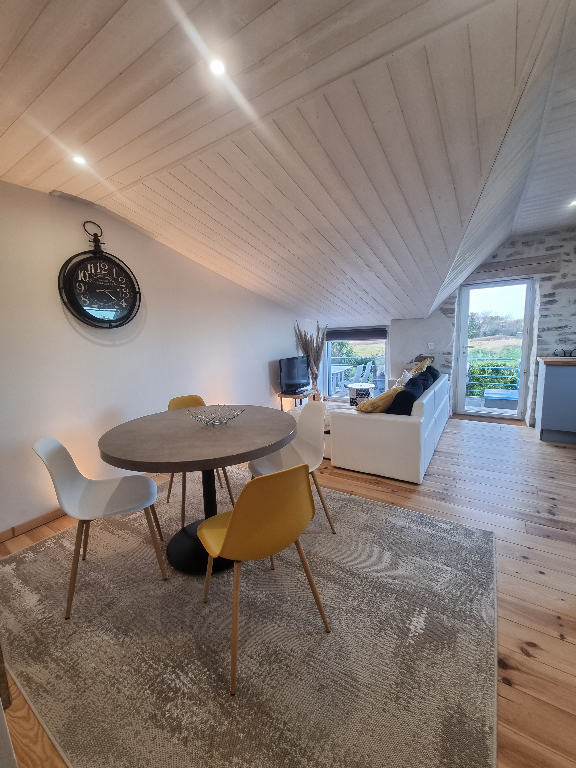 Perle Rare avec vue mer ****** Idéal pour installer votre activité de gîte ou chambres d'hôte. ****** Nous avons trouvé pour vous, la PERLE RARE ! en Exclusivité Un emplacement très demandé avec une vue imprenable sur les dunes et la mer ! A seulement 2 min de la mer et des spots de Surfs ***** Une magnifique maison en pierre d'environ 230 m2 Vous y retrouverez un RDC à transformer à votre convenance d'environ 130 m2 avec sa magnifique terrasse arborée. A l'étage vous bénéficierez d'un grand appartement type F2 d'environ 74 m2 au sol avec vue mer ****** Sans oublier un magnifique appartement F3 d'environ 45m2 au sol avec vue mer. Entièrement rénové de 2021. Installez-vous et continuez à créer votre nid douillet avec le charme de la pierre et du bois. Vous pourrez créer de nouveaux logements avec terrasse et jacuzzi, espace SPA massage ? ******* Vos voyageurs, seront conquis par le charme du lieu, la proximité de la mer et des nombreux GR ******* Laissez-vous guider par votre imagination tout est possible ici. ****** A visiter rapidement ! Bien exceptionnel. ****** Contactez votre conseillère immobilier Julie François pour plus de renseignements ou une visite au 06 41 54 48 66 - (4.95 % honoraires TTC à la charge de l'acquéreur.) Julie FRANCOIS (EI) Agent Commercial - Numéro RSAC : 847828837 - Quimper.