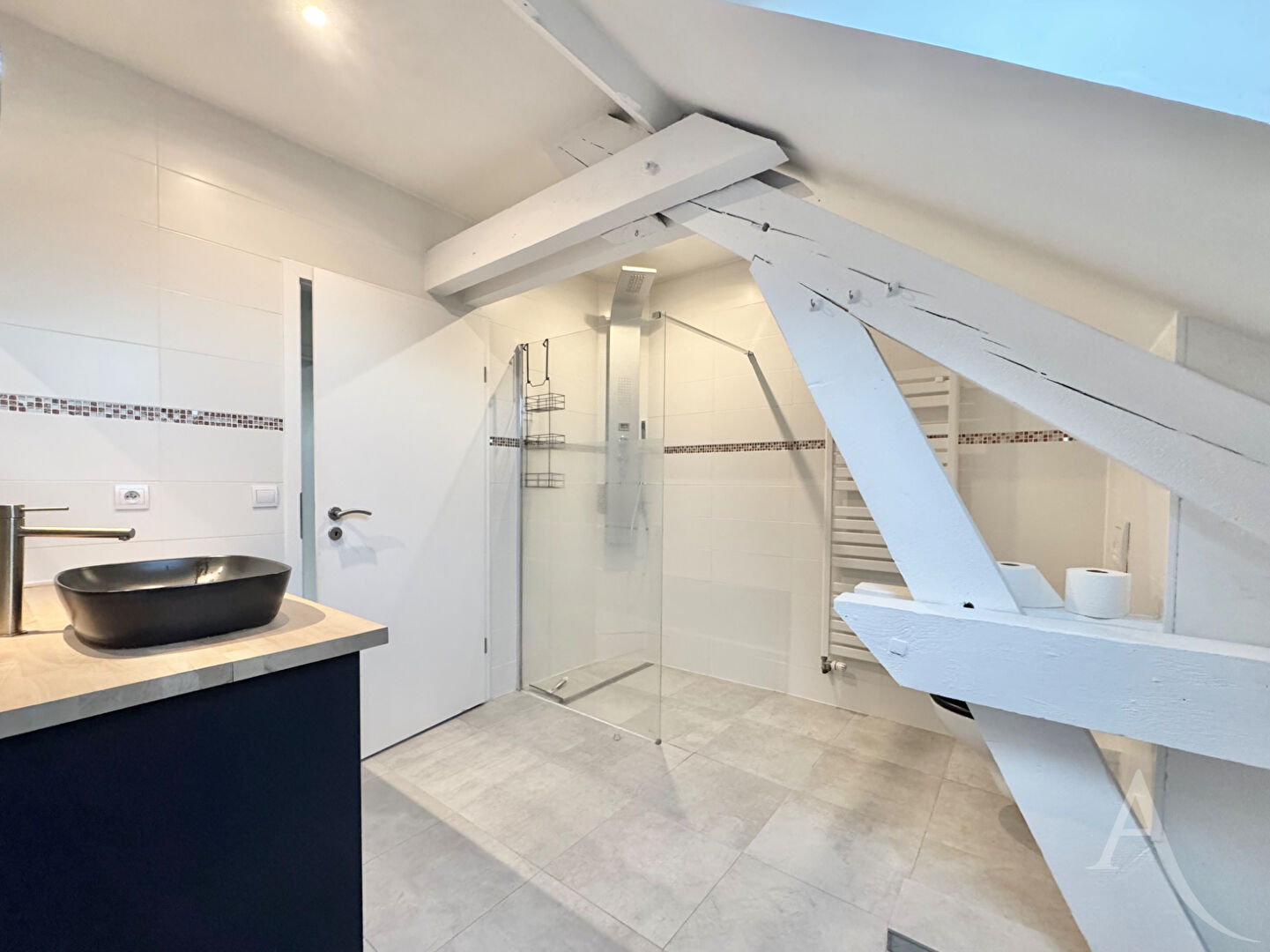 EN EXCLUSIVITE dans notre Agence L'ADRESSE Immobilier Thionville Ce charmant appartement sous les toits, et totalement rénové, est situé à Terville à côté du parc de la Mairie, au sein d'une petite copropriété bien entretenue de 3 logements, au troisième et dernier étage. Logement très calme et ultra lumineux ! Il offre une belle superficie habitable de 93,58 m² (54,30 m² en loi Carrez). Sa charpente apparente confère un univers unique à ce lieu et fait partie intégrante de la décoration. L'entrée est vaste et accueillante et possède son vestiaire aménagé pour stocker de nombreuses affaires et déposer manteaux et chaussures. Le dégagement recouvert de parquet conduit à la cuisine ouverte et à l'espace de vie. L'espace de vie se compose d'une partie séjour dans lequel meuble TV, canapé d'angle et commode trouveront largement leur place. La cuisine est luxueuse - plans de travail en granit - ouverte aménagée de manière intelligente et généreusement équipée en électroménager de grande marque et en rangements. Notamment, ses 3 caves à vin vitrées font particulièrement la différence. La cuisine est dinatoire et peut accueillir 4 à 6 personnes sur son îlot central largement fourni en rangements supplémentaires. La luminosité est prédominante ! Le bien propose également deux belles chambres aux poutres de couleur blanche qui font partie intégrante de la décoration et du charme de ce logement. Luminosité, volume au sol (20m²), dressing, charme, parquet sont les atouts de ces pièces. La salle de douche ultra spacieuse et bien agencée se veut moderne, pratique et lumineuse. Emplacements pour votre lave-linge et votre sèche-linge côte à côte, fil rétractable pour étendre le linge, douche à l'italienne, wc suspendu et meuble vasque neuf. Velux. Il reste de l'espace pour la meubler davantage au besoin. Une cave privative vient le compléter. Parking gratuit avec de nombreuses places libres au pied de la résidence. Très faibles charges de copropriété : 140 euros / an Pas de procédure en cours dans la copropriété ni de travaux votés qui engendreraient des dépenses à venir. Chauffage individuel au gaz, production d'eau chaude par la chaudière à condensation. Double vitrage. Des travaux d'installation de VMC hydroréglable sont en cours afin de passer la note DPE de E à D. Propositions d'aménagement vous sont proposées (visuels non contractuels) pour vous aider à vous projeter. Ce bien rénové avec goût et des matériaux de qualité est résolument atypique et charmant, au calme et sans vis-à-vis, avec toutes les commodités accessibles à pied. Un nid douillet à ne pas manquer ! Il vous plait et il rentre dans votre budget ? Contactez-nous pour davantage d'informations et pour le visiter afin de vous rendre compte par vous-même de son charme et de son agencement pratique bien que ce soit un bien sous les toits. Retrouver la vidéo de présentation sur nos réseaux sociaux pour une visite immersive. Tél : 03.82.87.77.17 ou 06.67.91.21.78 Par email : thionville@ladresse.immo Les informations sur les risques auxquels ce bien est exposé sont disponibles sur le site Géorisques : www.georisques.gouv.fr . Copropriété de 6 lots - dont 3 lots habitation. (Pas de procédure en cours). Charges annuelles : 160 euros.