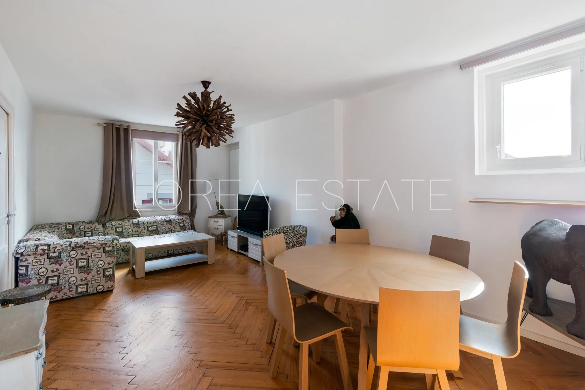 Au deuxième étage, un appartement 3 pièces indépendant de 72 m² qui offre un superbe volume de vie. Dans cet appartement vous trouverez un joli séjour, une cuisine séparée entièrement équipée, deux chambres, une salle d’eau et un toilette indépendant. Cet espace est idéal pour accueillir famille, amis ou pour un projet