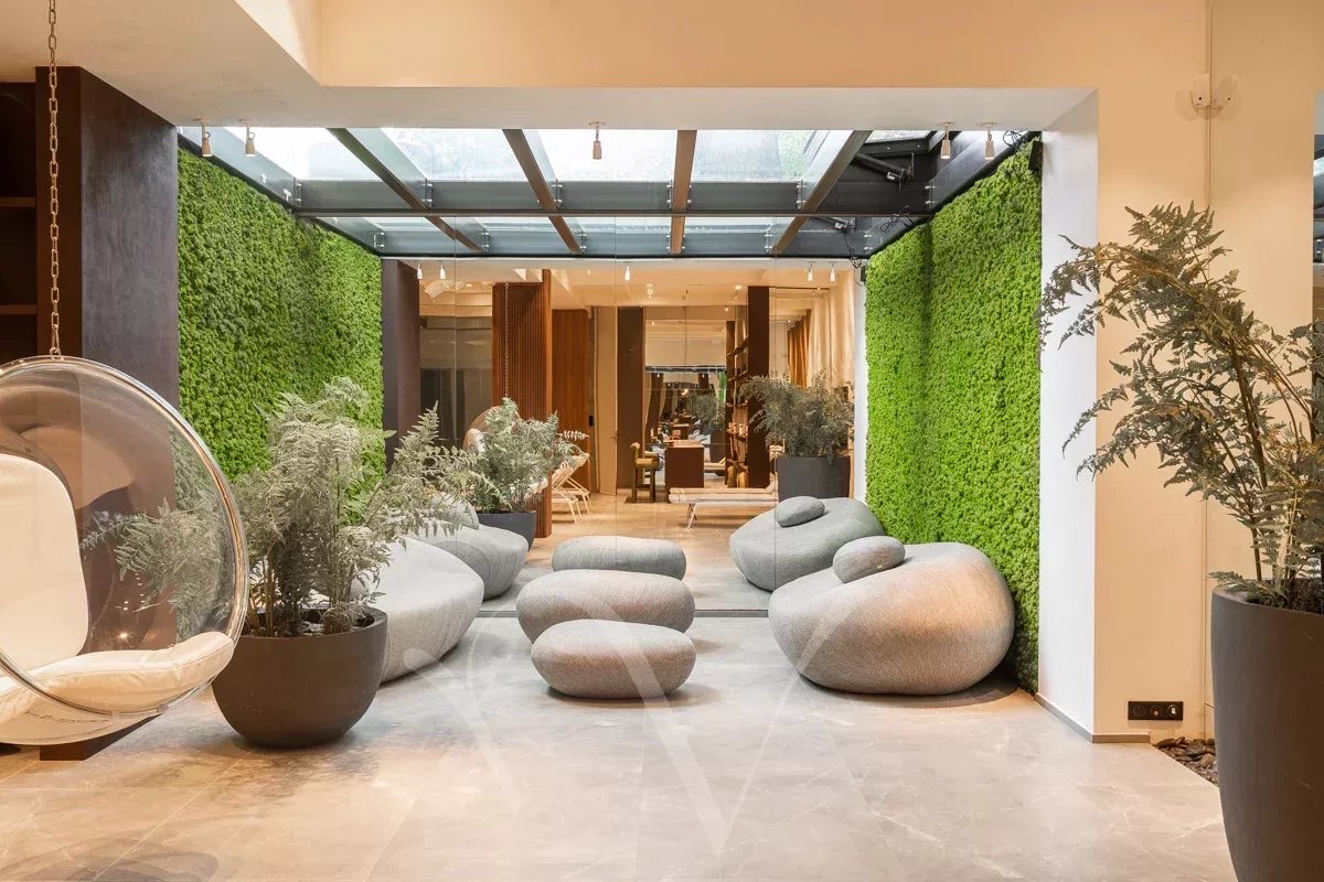 Au niveau du jardin, des espaces de réception et une cuisine.