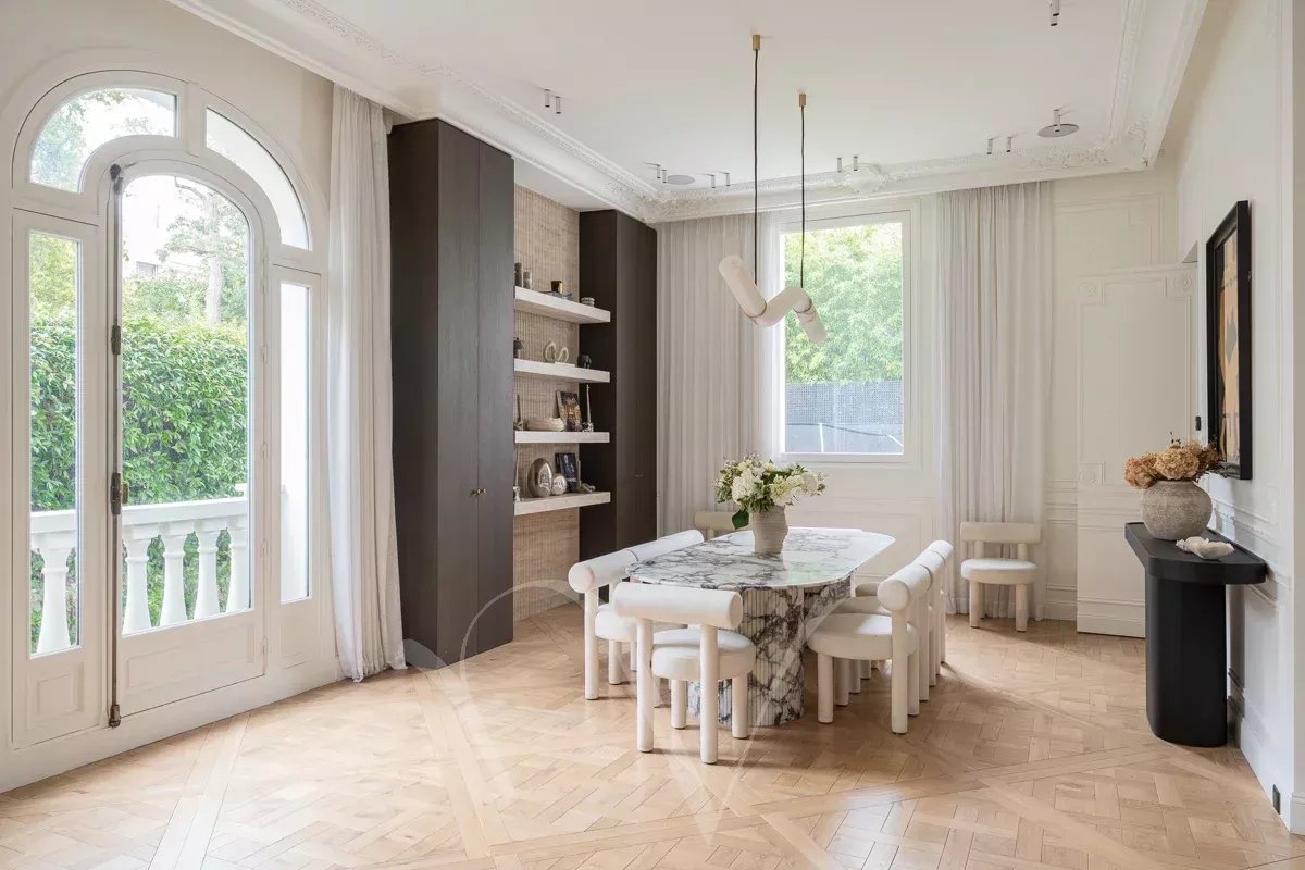A une très jolie adresse de Boulogne-Billancourt et à quelques minutes des plus beaux quartiers du 16e arrondissement, une sublime maison de 720 m² avec un jardin de 800 m².
