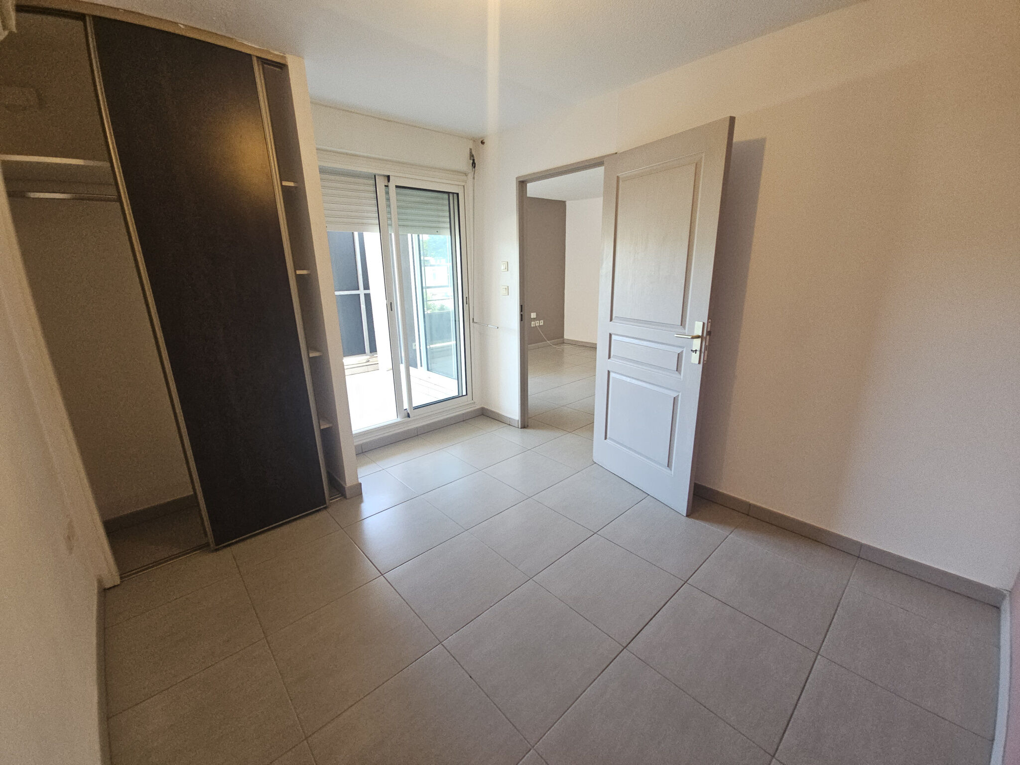 Comprenant un salon / séjour, une chambre climatisée + placard, une salle de bains + cabine de douche, un wc, une cuisine équipée de plaques électriques + hotte aspirante + rangement, un dégagement + placard et un balcon.