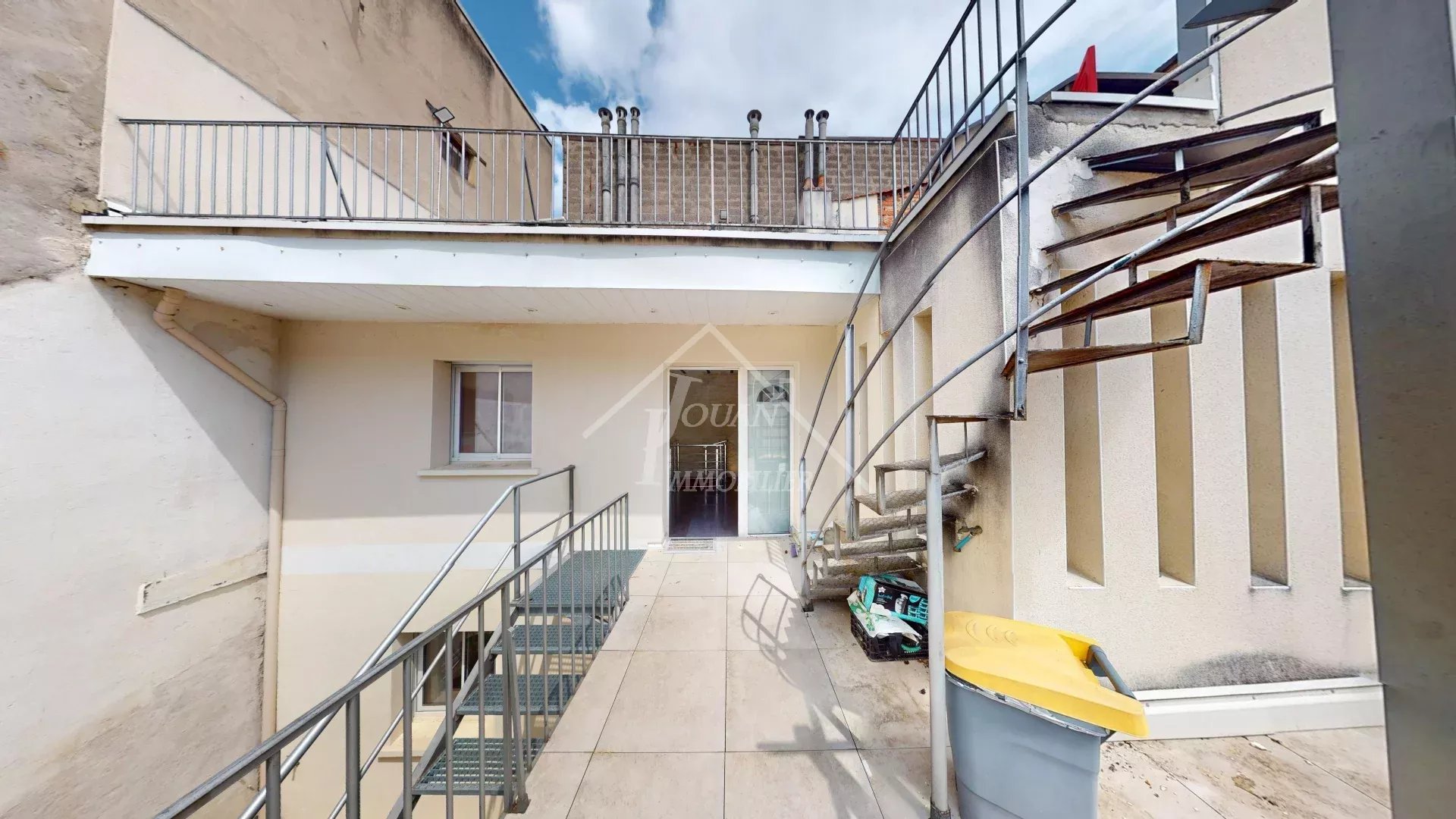 Visite virtuelle disponible. Prix négociable. Exclusivité, plein centre ville en arrière cour au calme, très joli duplex composé d'une pièce de vie avec cuisine ouverte et équipée, cellier, deux chambres, salle d'eau-wc, wc. Deux belles terrasses de 32m2 et 46m2, abri de jardin. Double vitrage, volets roulants, climatisation réversible, tout à l'égout. Bien rare à la vente. Copropriété composé de 6 lots principaux. Charges de copropriété 70€/mois, taxe foncière 1217€. DPE C, GES A. Honoraires charge acquéreur 4.71%. Prix hors honoraires 170 000€. Agent commercial indépendant: Nathanaël TOUITOU-06.25.95.32.29 (entreprise individuelle).
