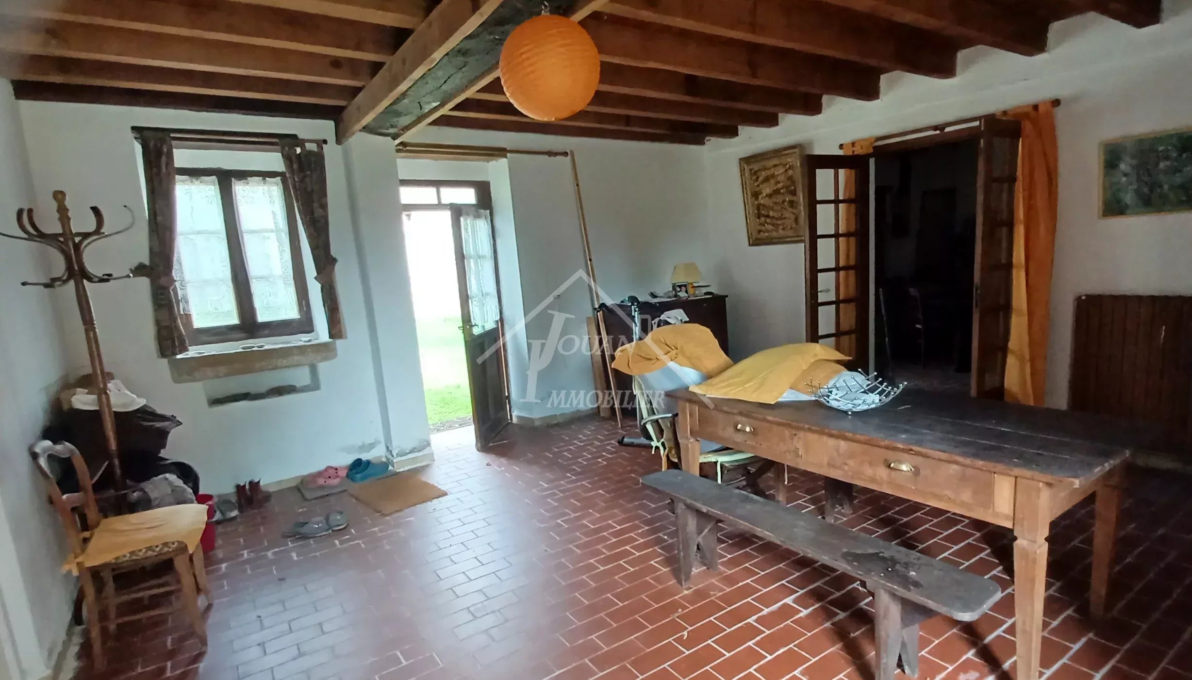 Maison bourbonnaise indépendante au coeur du Bocage à finir de rénover, maçonnerie en bon état. Entrée de plain-pied sur grand séjour traversant, sol tomettes, poutre de chêne apparente, petite cuisine en agrandissement ouvrant sur le jardin ; chambre ou salon avec cheminée et ouvertures des 2 côtés, salle de bain avec fenêtre, toilettes avec lave-mains. Escalier menant à l'étage toute surface, sur parquet pour une grande chambre. Prévoir réparation de couverture. Charme et tranquillité à 2 minutes d'un magnifique étang de loisirs et forêts alentours dont Tronçais à 15 mn. Proximité de Buxières et Cosne pour tous commerces. 35 minutes de Moulins et Montluçon. DPE G