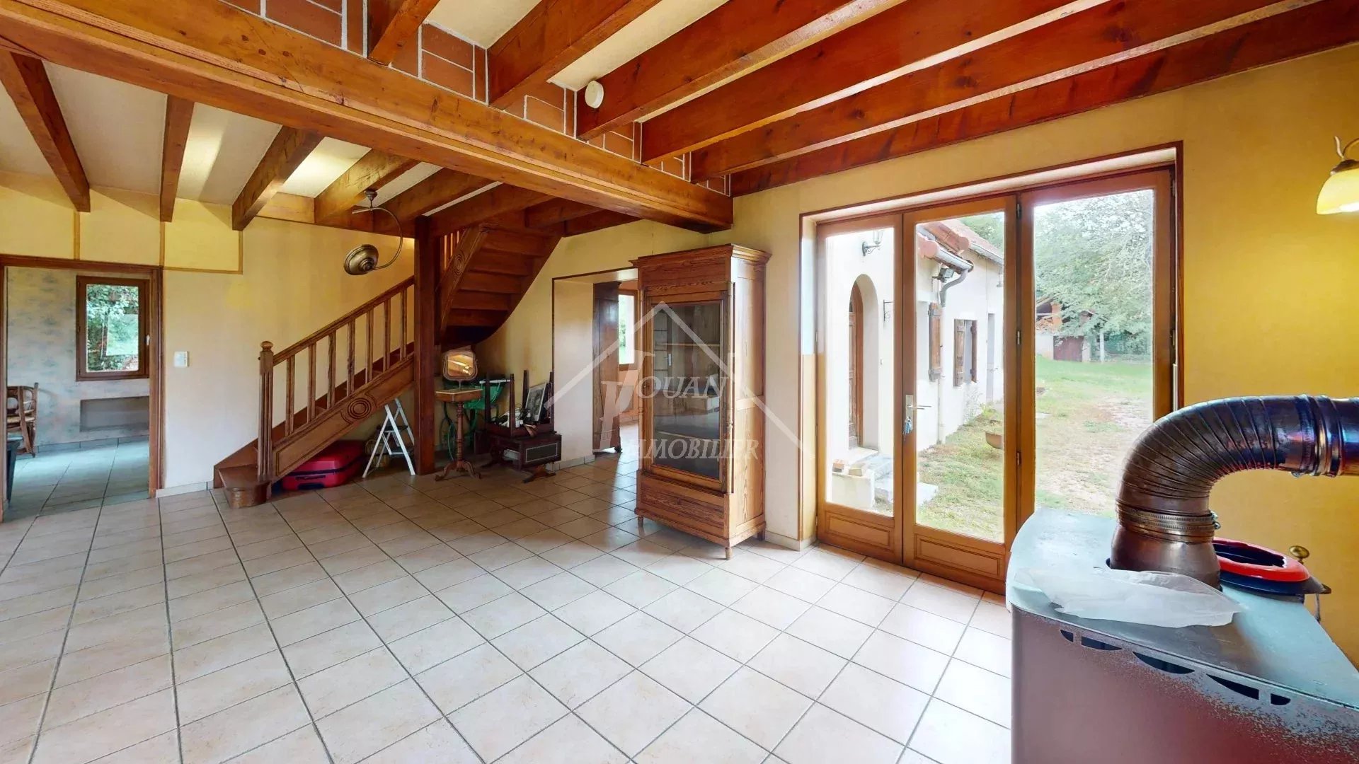 En exclusivité, pour les amoureux des espaces extérieurs, maison de caractère à rénover avec ses dépendances sur 2128m². Situé proche de Dompierre sur Besbre, cette maison offre un très joli potentiel sur un bel emplacement. Celle-ci se compose d'une première partie comprenant au rez-de-chaussée, une grande entrée, une cuisine, un grand salon avec poutres apparentes et son poêle à bois. À l'étage se trouvent un palier desservant deux chambres, une salle de bain et un WC. La deuxième partie de la maison se trouve être une ancienne grange rénovée comprenant un salon avec cheminée, une buanderie avec WC et douche, une salle de bain, un bureau et un grenier aménageable. Le tout sur un jardin arboré de 2128 m² avec dépendances dont un chenil. DPE classe E - logement à consommation excessive audit énergétique réalisé Assainissement non collectif non conforme Prix hors honoraires : 128 000 euros net vendeur, honoraires charge acquéreur : 6.95 % TTC du prix du bien, soit 136 900 euros frais d'agence compris. Les informations sur les risques auxquels ce bien est exposé sont disponibles sur le site Géorisques : www.georisques.gouv.fr