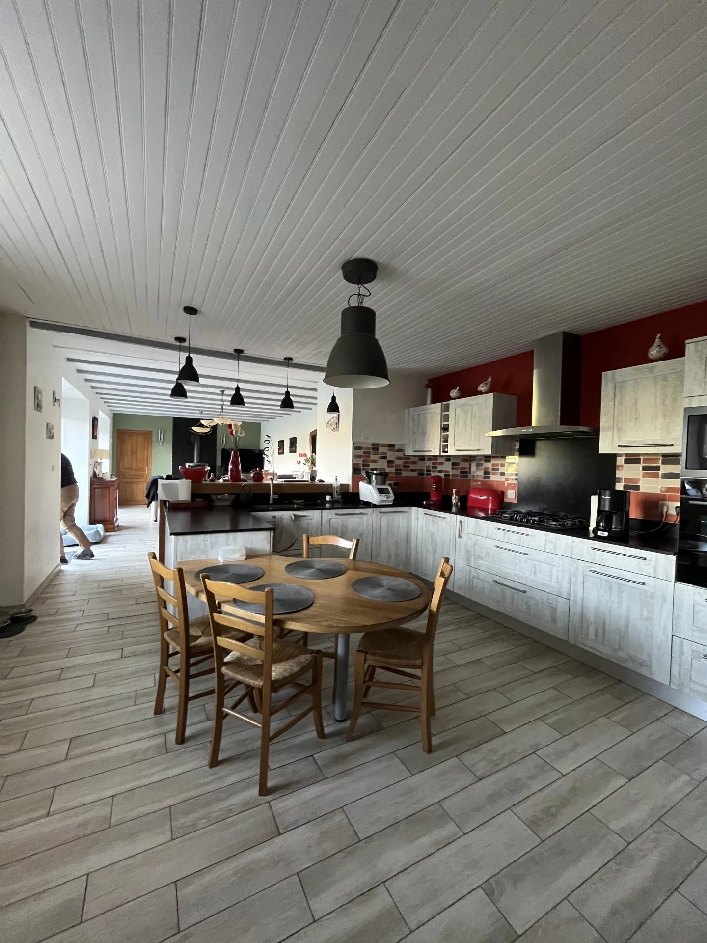 Longère rénovée avec au rez-de-chaussée : une chambre, une cuisine équipée, ouverte sur un salon séjour avec un poêle à bois et une salle de bain. A l'étage, 3 chambres et une salle de bain. Le tout sur un terrain de 3 500m² offrant dépendances et chenil. A visiter !