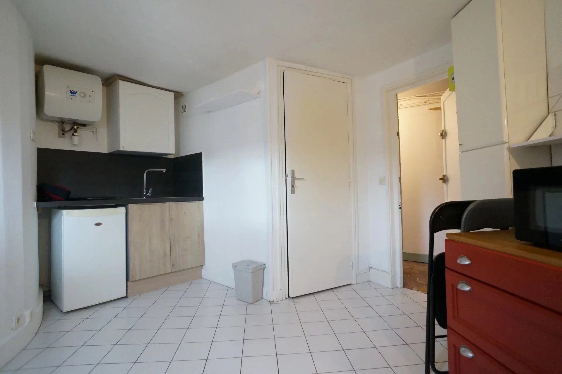 Dans un bel immeuble en Pierre de Taille, au 5e étage et dernier sans ascenseur, studio de 12 m² comprenant une pièce principale avec kitchenette et une salle d'eau. Wc sur le palier. Très bon état général.