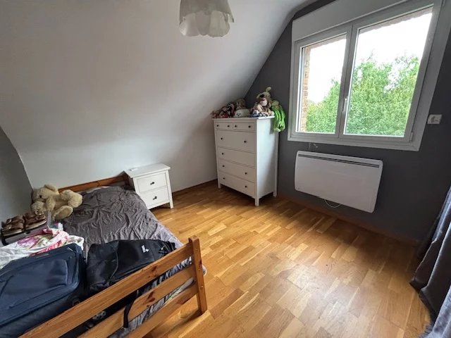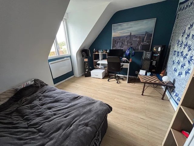 Au premier étage, un palier avec espace bureau dessert trois chambres et une salle de douche.