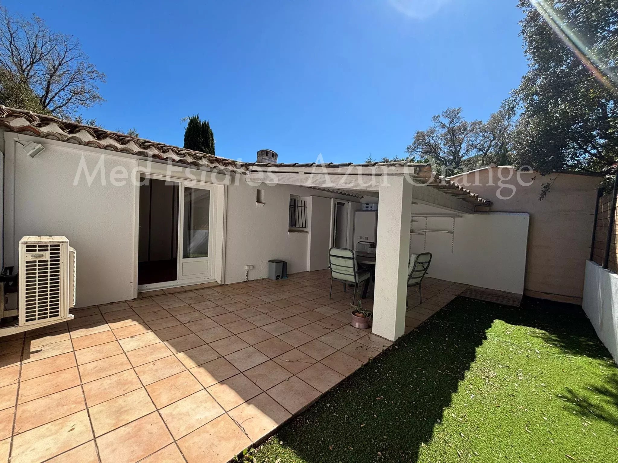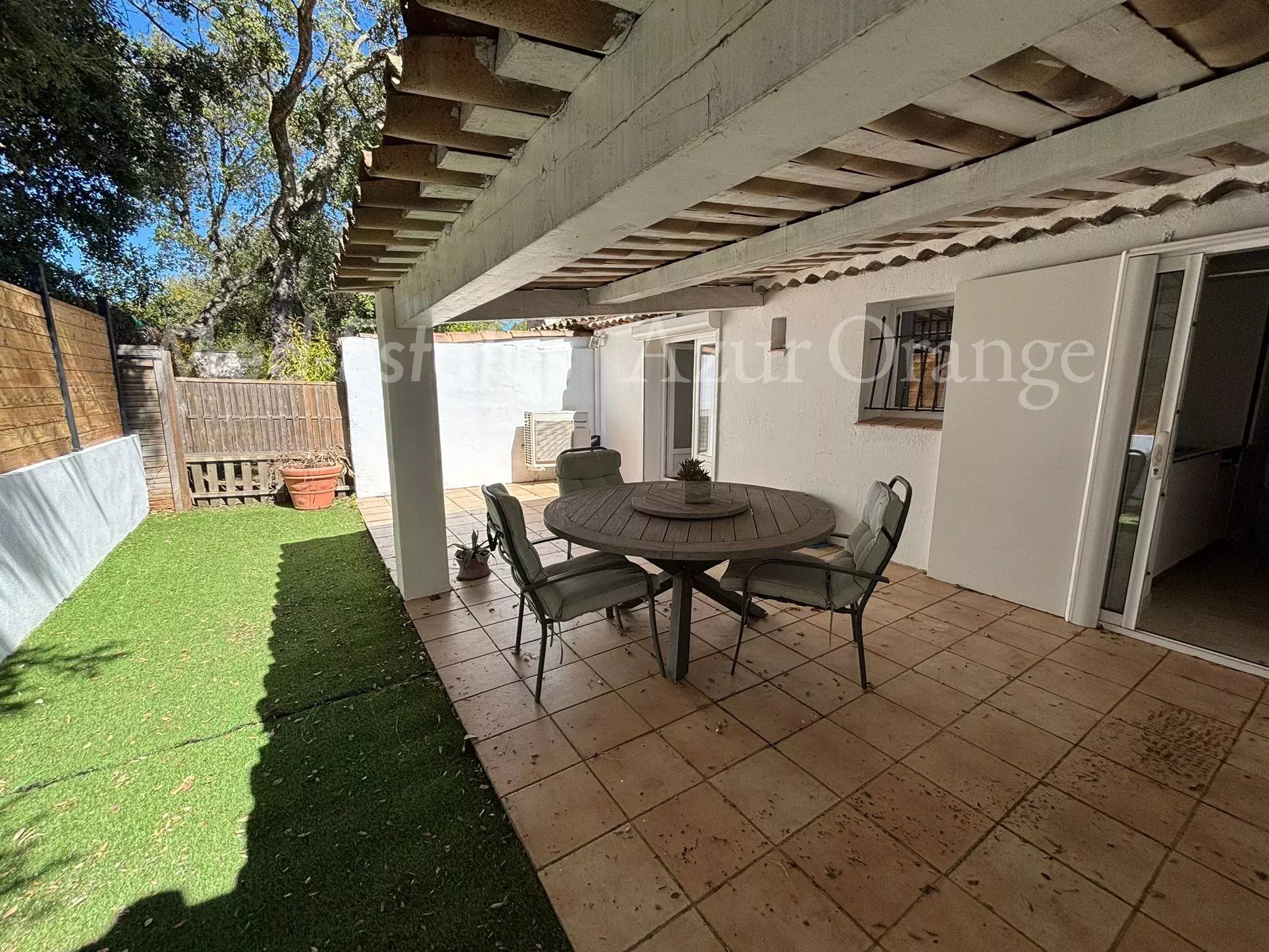 Située à Grimaud, au sein de la Résidence sécurisée de Beauvallon, cette maison mitoyenne d’environ 46 m² offre un cadre de vie privilégié, à quelques pas de la mer. La maison se compose d’un séjour, d’une cuisine, de deux chambres, d’une salle de bains et de WC indépendants. Elle bénéficie de deux espaces extérieurs distincts : – une terrasse à l’avant avec vue sur la mer, – une terrasse partiellement couverte à l’arrière, idéale pour profiter d’un espace plus intime. Un jardin d’agrément attenant de 175 m² complète l’ensemble, offrant un extérieur appréciable dans un environnement verdoyant. Le domaine est fermé et sécurisé et dispose d’une piscine commune. La plage est accessible à pied grâce à un accès privé, un atout rare et recherché dans le secteur. Un bien idéal pour un pied-à-terre sur le Golfe de Saint-Tropez, combinant vue mer, extérieur, piscine et accès direct à la plage, au sein d’un environnement résidentiel prisé.