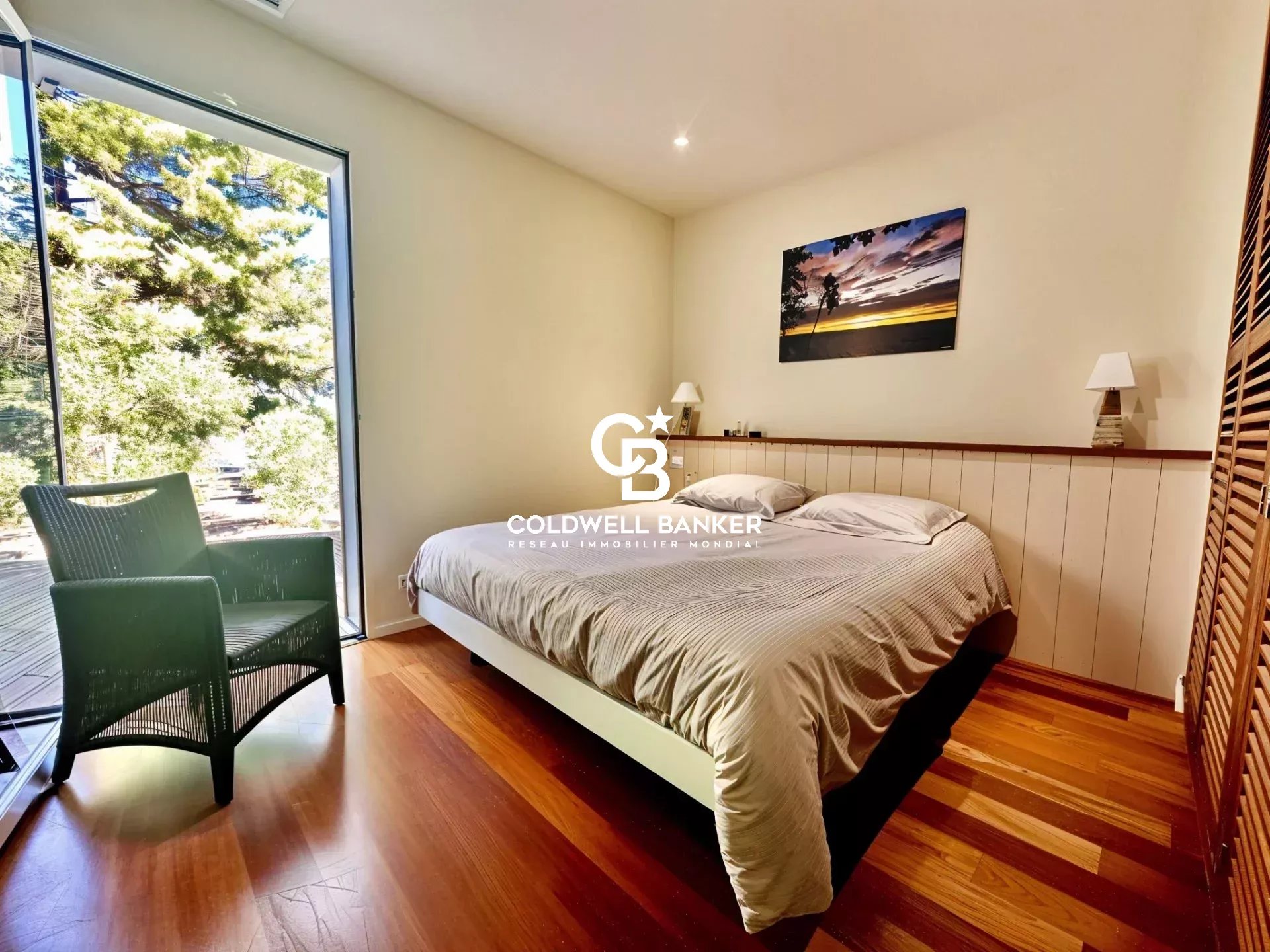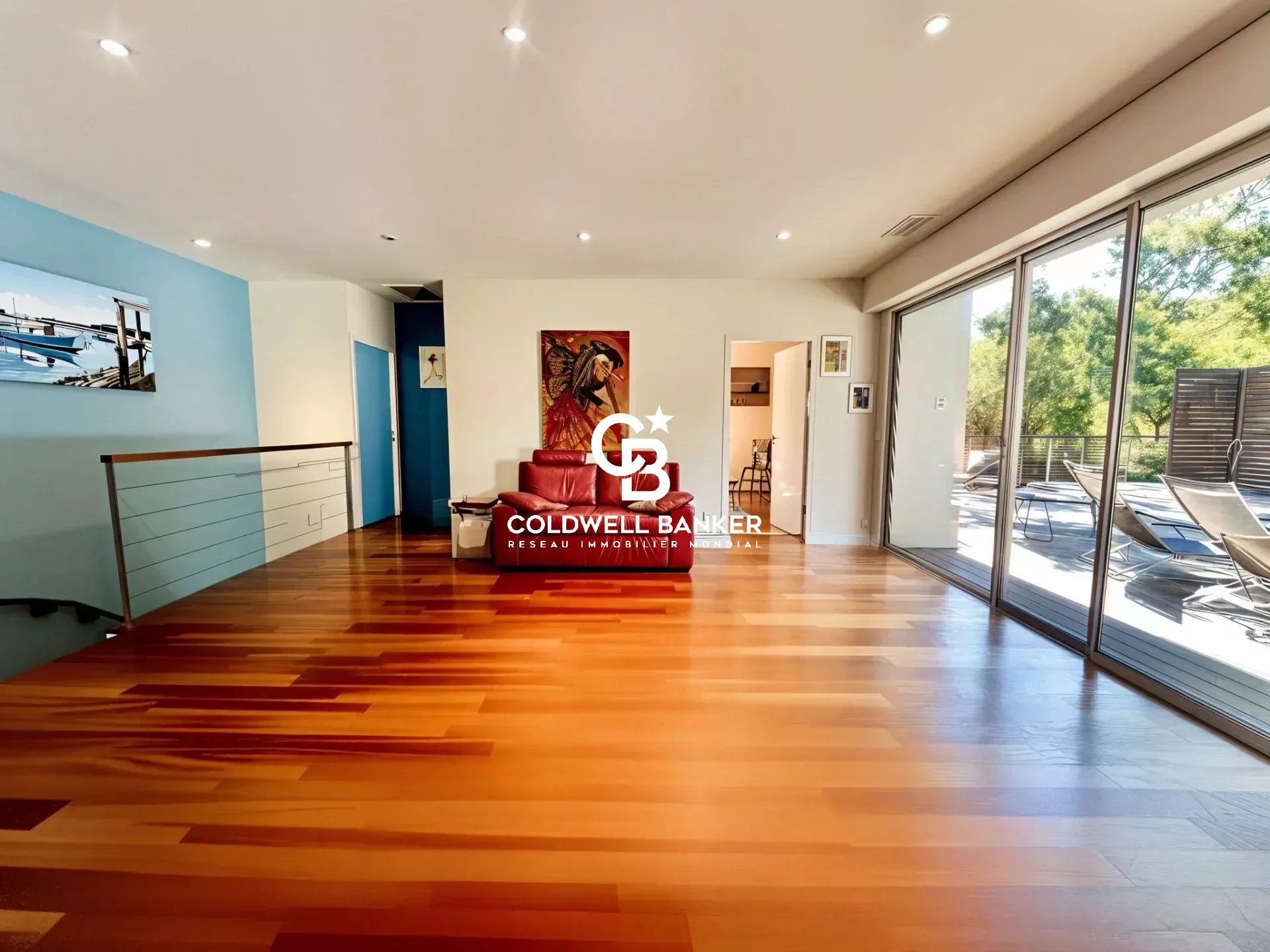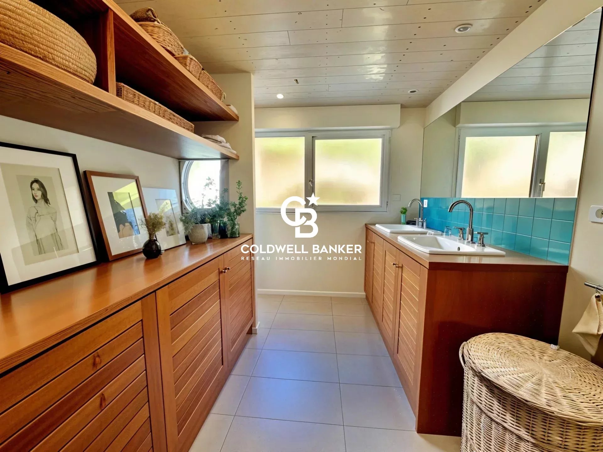 Coldwell Banker Immoba Realty vous propose cette superbe villa située entre les villages du Canon et de Piraillan, dans l’un des secteurs les plus prisés de la Presqu’île. À quelques pas ou minutes à vélo des commerces, des plages du Bassin et de l’océan, cette propriété offre un cadre de vie rare et privilégié. Construite dans les années 70 et entièrement rénovée par un architecte en 2005, la villa séduit par ses volumes généreux, sa luminosité et son ouverture sur la nature environnante. Le séjour principal, lumineux et convivial, s’ouvre sur une terrasse de 170 m² avec piscine chauffée, offrant une vue dominante sur la pinède. Un salon TV indépendant complète l’espace, tandis que la cuisine ouverte et fonctionnelle, avec arrière-cuisine, permet de profiter pleinement de l’espace de vie. La villa dispose de sept chambres réparties sur deux niveaux : Niveau principal : suite parentale, deux chambres supplémentaires, deux salles de bains et deux WC Niveau inférieur : trois chambres, deux salles d’eau, deux WC, buanderie et grand garage adapté pour véhicules et équipements de loisirs Implantée sur un terrain de 1 110 m², la propriété bénéficie d’une parfaite intimité au cœur d’un environnement naturel préservé. Prix de vente : 2 290 000 € FAI Honoraires inclus à la charge de l’acquéreur : 5 % TTC Prix net vendeur : 2 180 952 € Diagnostics : DPE : C (133 kWh/m²/an) – GES : A (4 kg CO₂/m²/an) Estimation des dépenses annuelles d’énergie : 2 400 € – 3 310 € Pour plus d’informations, contactez Jean-François ZORZ Retrouvez toutes nos propriétés sur immoba.fr Informations sur les risques : www.georisques.gouv.fr