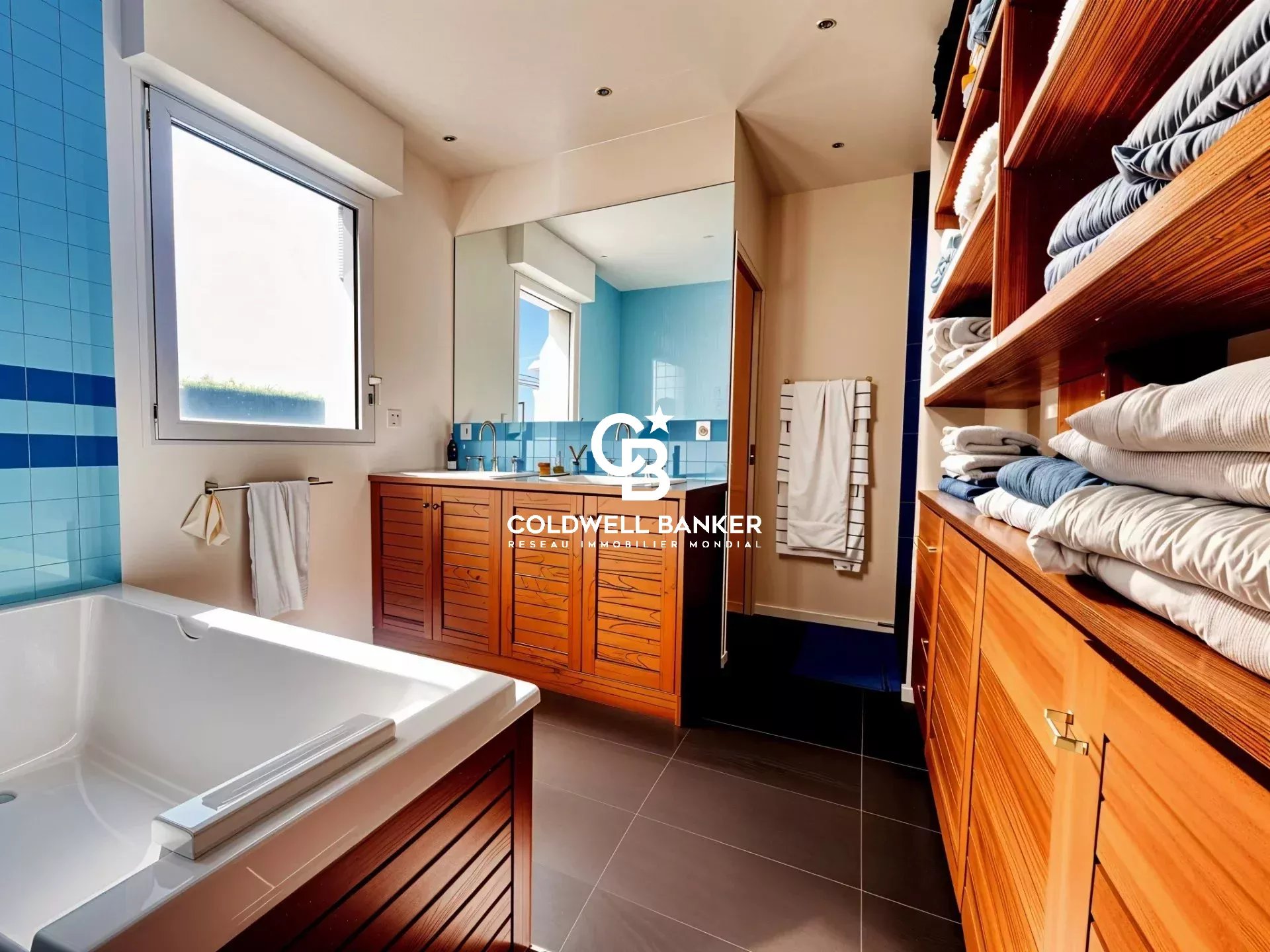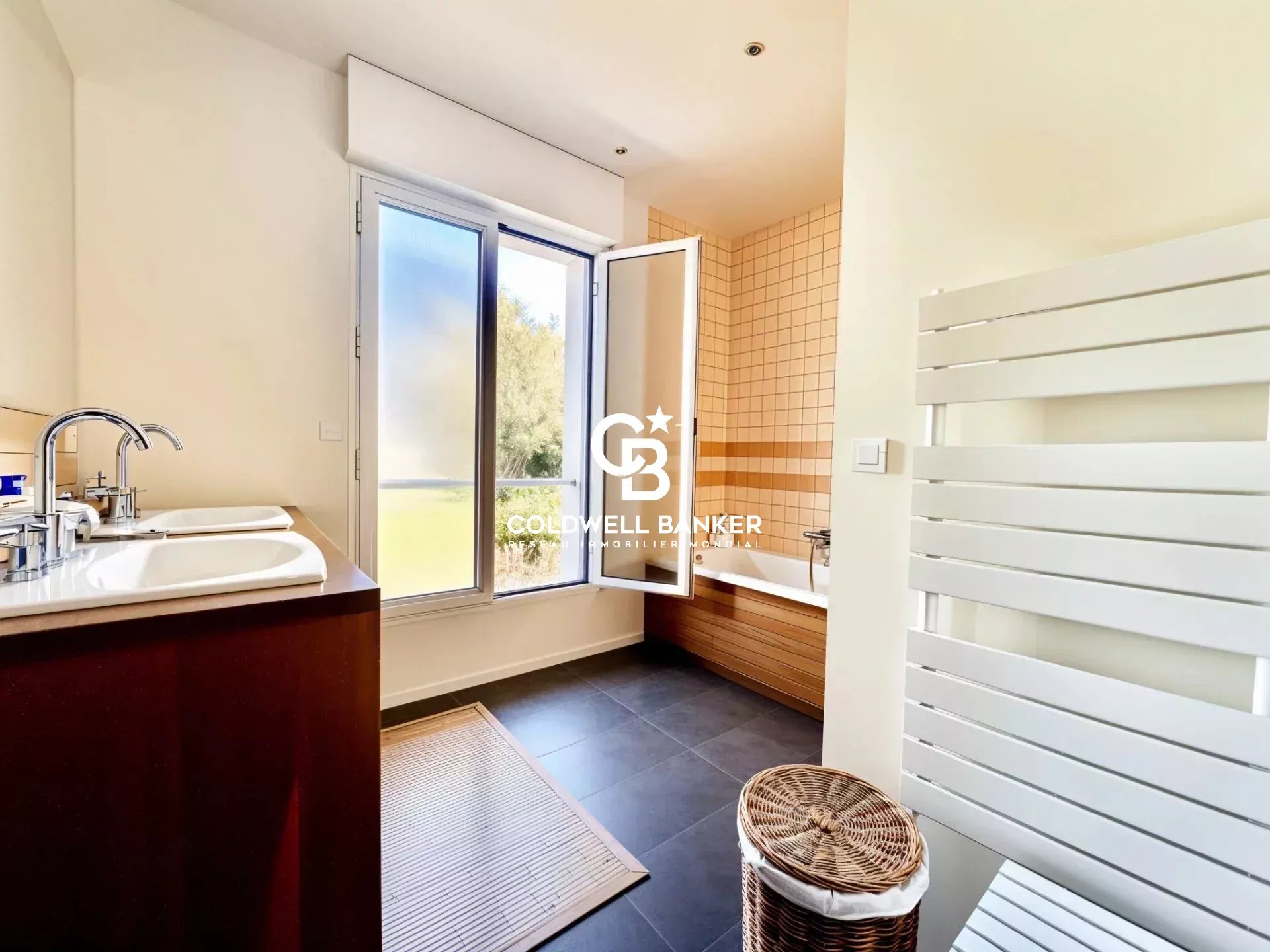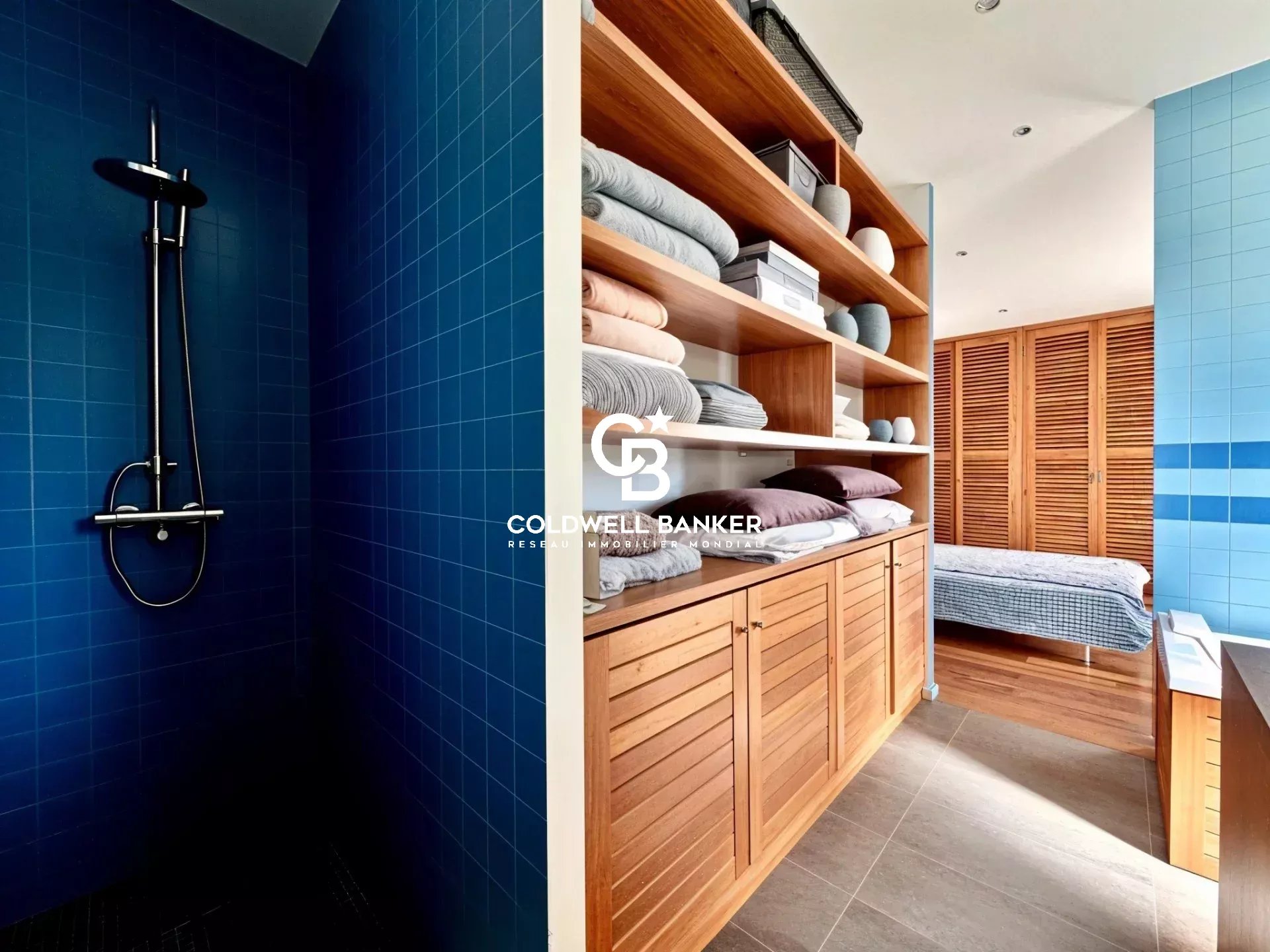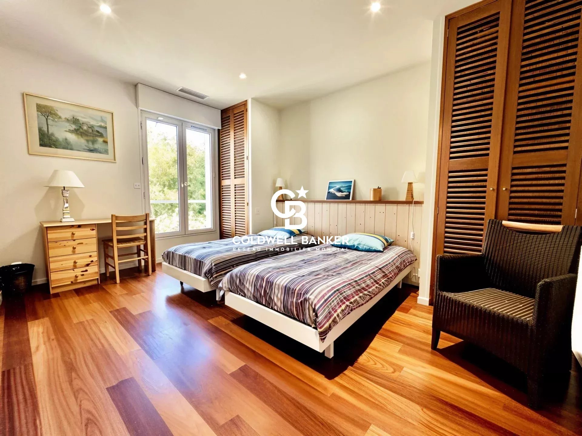 Coldwell Banker Immoba Realty vous propose cette superbe villa située entre les villages du Canon et de Piraillan, dans l’un des secteurs les plus prisés de la Presqu’île. À quelques pas ou minutes à vélo des commerces, des plages du Bassin et de l’océan, cette propriété offre un cadre de vie rare et privilégié. Construite dans les années 70 et entièrement rénovée par un architecte en 2005, la villa séduit par ses volumes généreux, sa luminosité et son ouverture sur la nature environnante. Le séjour principal, lumineux et convivial, s’ouvre sur une terrasse de 170 m² avec piscine chauffée, offrant une vue dominante sur la pinède. Un salon TV indépendant complète l’espace, tandis que la cuisine ouverte et fonctionnelle, avec arrière-cuisine, permet de profiter pleinement de l’espace de vie. La villa dispose de sept chambres réparties sur deux niveaux : Niveau principal : suite parentale, deux chambres supplémentaires, deux salles de bains et deux WC Niveau inférieur : trois chambres, deux salles d’eau, deux WC, buanderie et grand garage adapté pour véhicules et équipements de loisirs Implantée sur un terrain de 1 110 m², la propriété bénéficie d’une parfaite intimité au cœur d’un environnement naturel préservé. Prix de vente : 2 290 000 € FAI Honoraires inclus à la charge de l’acquéreur : 5 % TTC Prix net vendeur : 2 180 952 € Diagnostics : DPE : C (133 kWh/m²/an) – GES : A (4 kg CO₂/m²/an) Estimation des dépenses annuelles d’énergie : 2 400 € – 3 310 € Pour plus d’informations, contactez Jean-François ZORZ Retrouvez toutes nos propriétés sur immoba.fr Informations sur les risques : www.georisques.gouv.fr