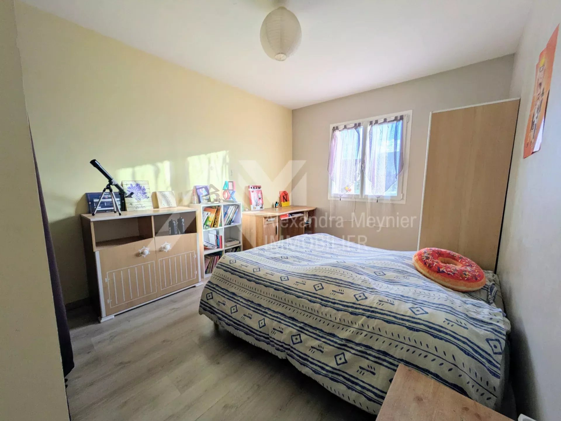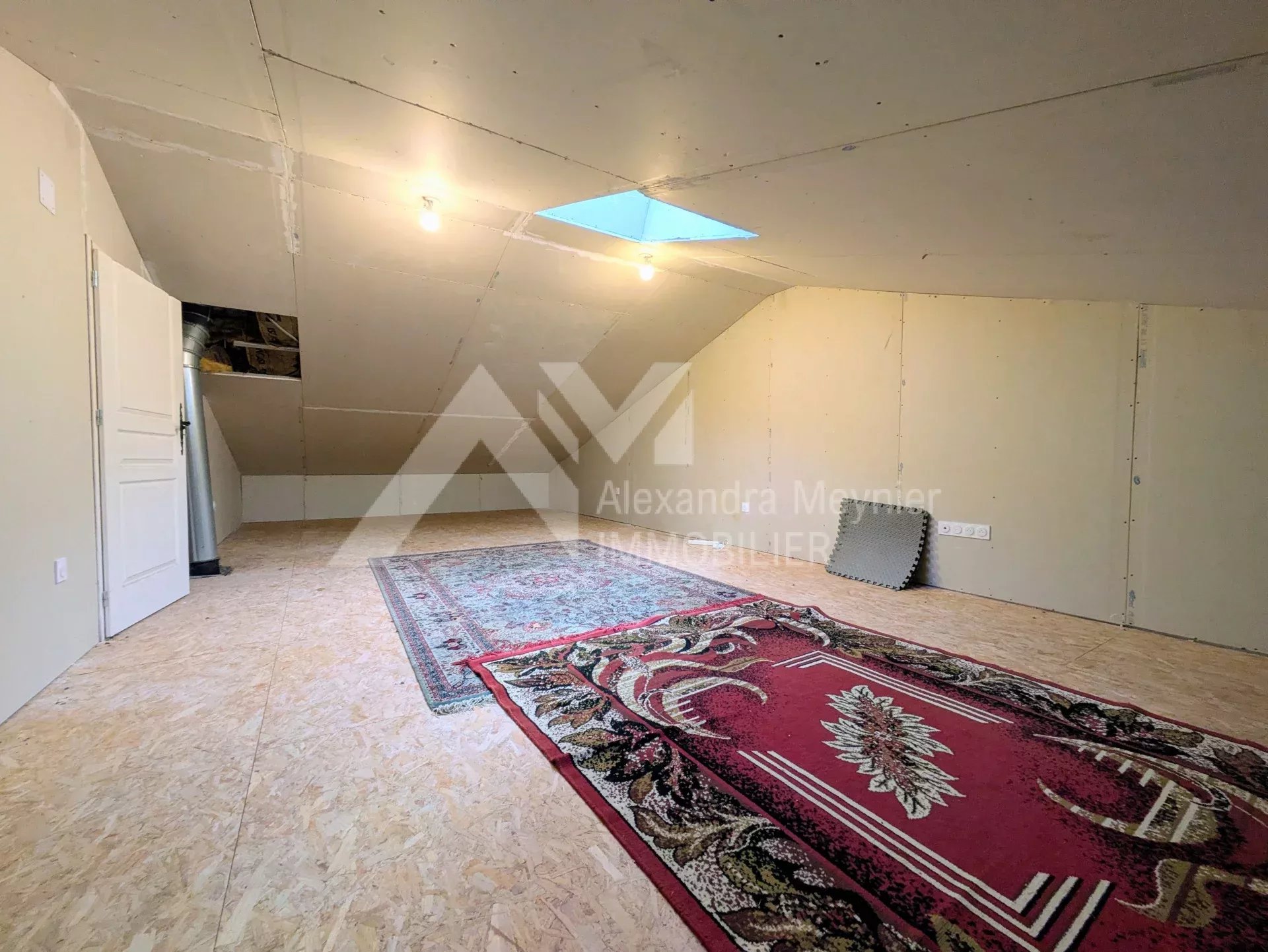 A l'étage, une partie des combles a été aménagée et isolée afin de bénéficier d'une pièce supplémentaire (chambre, bureau, salle de jeux...).