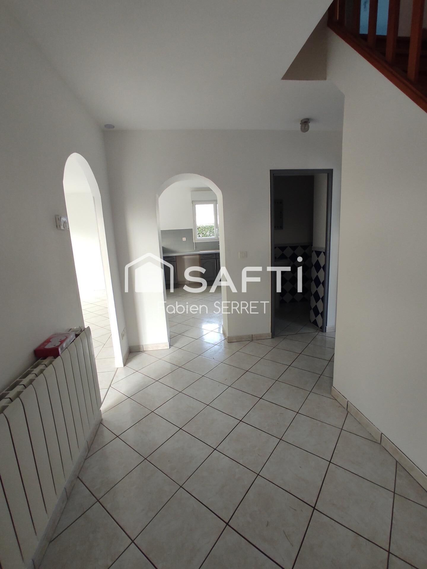 Cette maison se compose au rez-de-chaussée d'une grande entrée, une pièce de vie avec cheminée de 30 m², une cuisine de 11 m², un coin buanderie, une chambre avec sa salle d'eau, un wc et un grand garage de 21 m². À l'étage, vous trouverez 4 chambres (de 10 à 13 m²), une salle de bain et un wc. Belle terrasse très bien exposée, le terrain est entièrement clos et sans vis-à-vis, tout à l'égout, maison fibrée, toiture en ardoise naturelle.