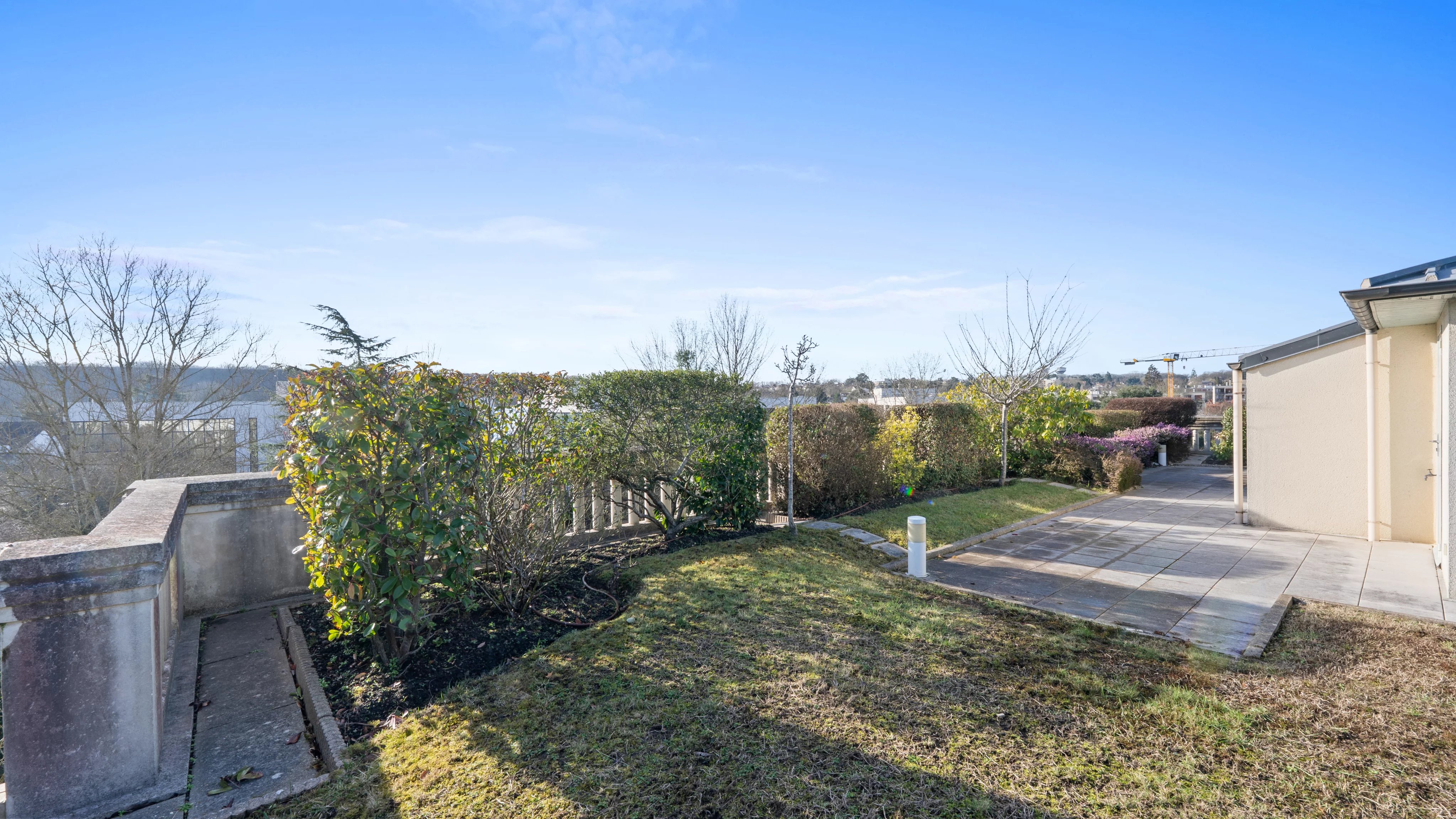 Un escalier intérieur conduit à un bureau baigné de lumière, offrant un accès direct à un magnifique rooftop privatif de 190 m², entièrement aménagé et paysagé, avec pergola et espace de rangement extérieur. L’appartement comme les terrasses donnent sur un parc et profitent d’un vis-à-vis très limité.