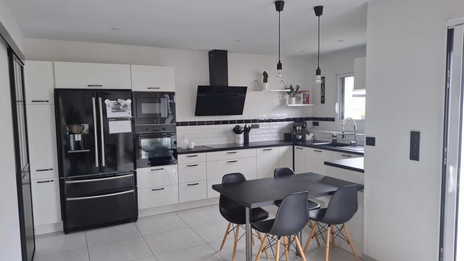 Au rez-de-chaussée, l’entrée dotée d’un placard mène à une agréable pièce de vie de 39 m² ouverte sur l’extérieur et réchauffée par un poêle à pellets. La cuisine, aménagée et entièrement équipée, s’intègre harmonieusement à l’ensemble. On y trouve également une lingerie avec rangements, deux chambres avec placards intégrés, une salle d’eau ainsi qu’un WC avec lave-mains. Le garage, complété par deux emplacements de stationnement, est relié au jardin par une coursive pratique.