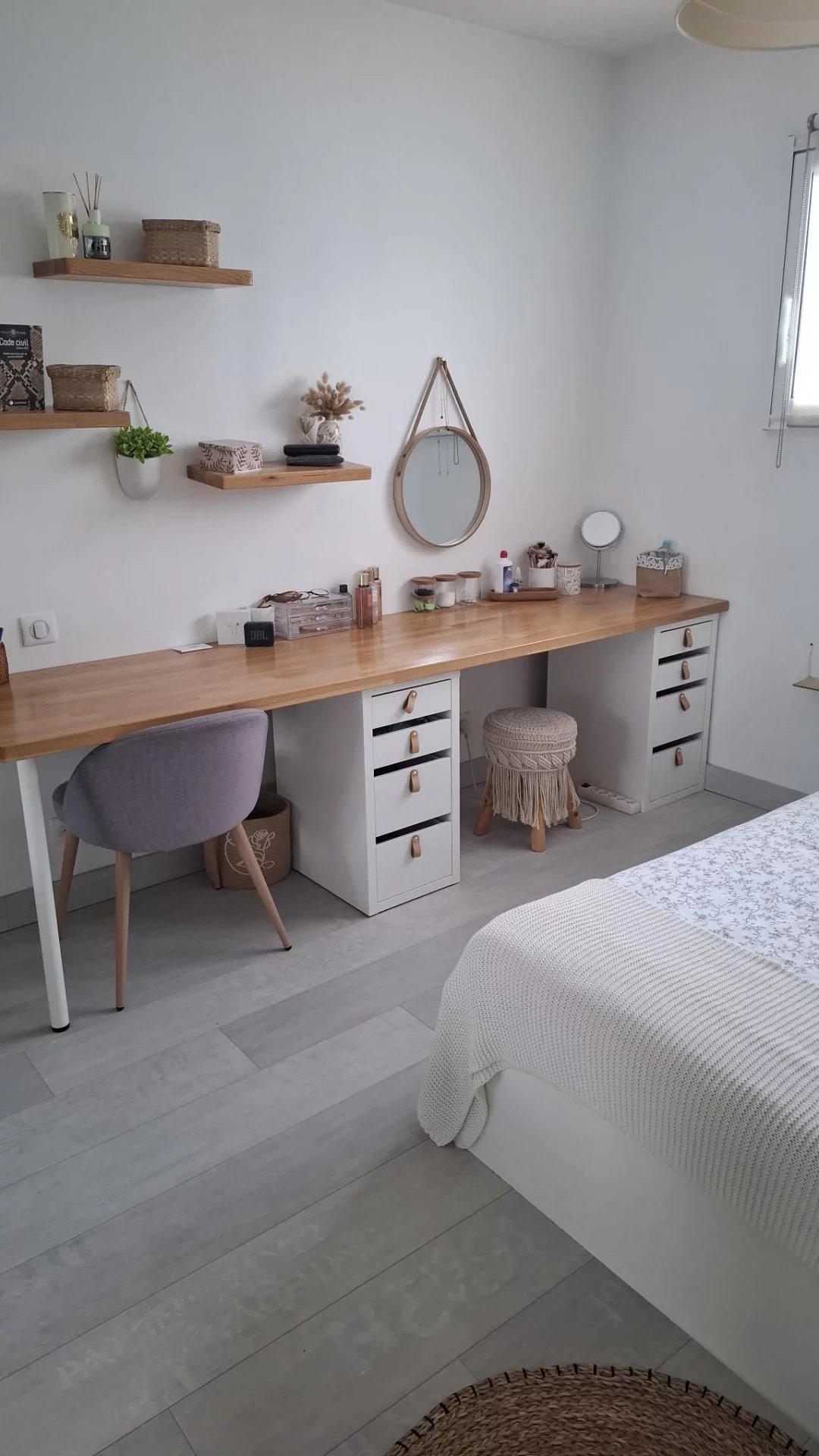 L’étage accueille une mezzanine pouvant servir de bureau et une vaste suite parentale comprenant sa propre salle d’eau, un dressing et un WC indépendant.