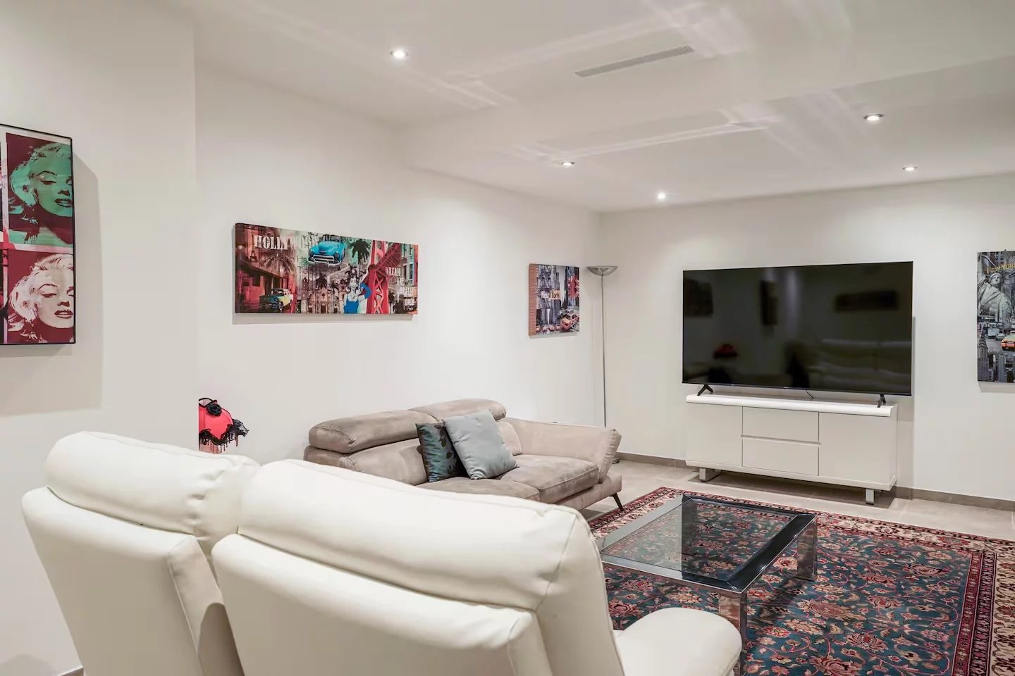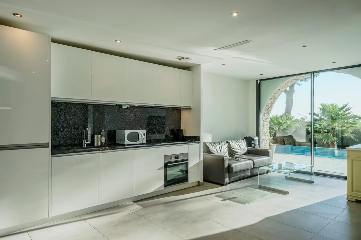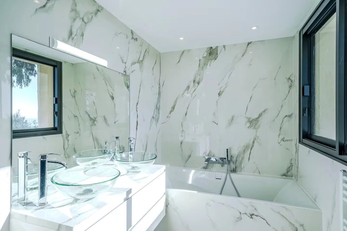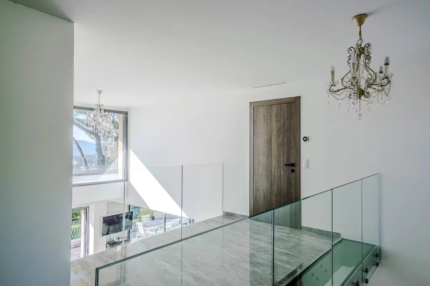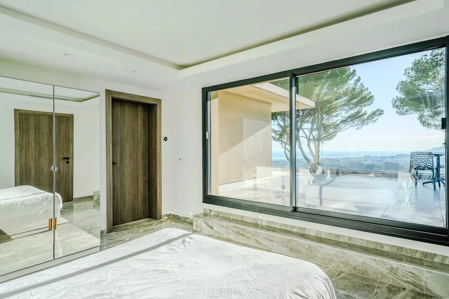 Dans un quartier résidentiel prisé de Mougins, cette villa de prestige bénéficie d’une position dominante offrant une vue panoramique exceptionnelle sur la Baie de Cannes. Située à seulement quelques minutes de Cannes et du Palais des Festivals, elle allie parfaitement calme, intimité et proximité des commodités. D’une superficie d’environ 390 m², la propriété est implantée sur un terrain clos et paysager de 2 000 m². Pensée pour mettre en valeur la mer, la villa offre une vue imprenable depuis l’ensemble des pièces, baignant les espaces de lumière naturelle. Répartie sur trois niveaux, elle propose un vaste séjour d’environ 90 m² avec cuisine semi ouverte entièrement équipée, idéal pour recevoir. La villa dispose de six chambres en suite, toutes offrant confort, élégance et vue mer. Une salle vidéo, un hammam et un espace bien être complètent les prestations intérieures. À l’extérieur, de larges terrasses surplombent la Méditerranée. Une piscine chauffée à débordement de 15 x 5 mètres, plusieurs espaces repas et un jardin aménagé invitent à profiter pleinement du cadre et du climat azuréen. Un portail automatique sécurise l’accès à la propriété, qui bénéficie d’un stationnement aisé pour plusieurs véhicules. Cette villa rare incarne un art de vivre raffiné sur la Côte d’Azur, idéale en résidence principale ou secondaire.