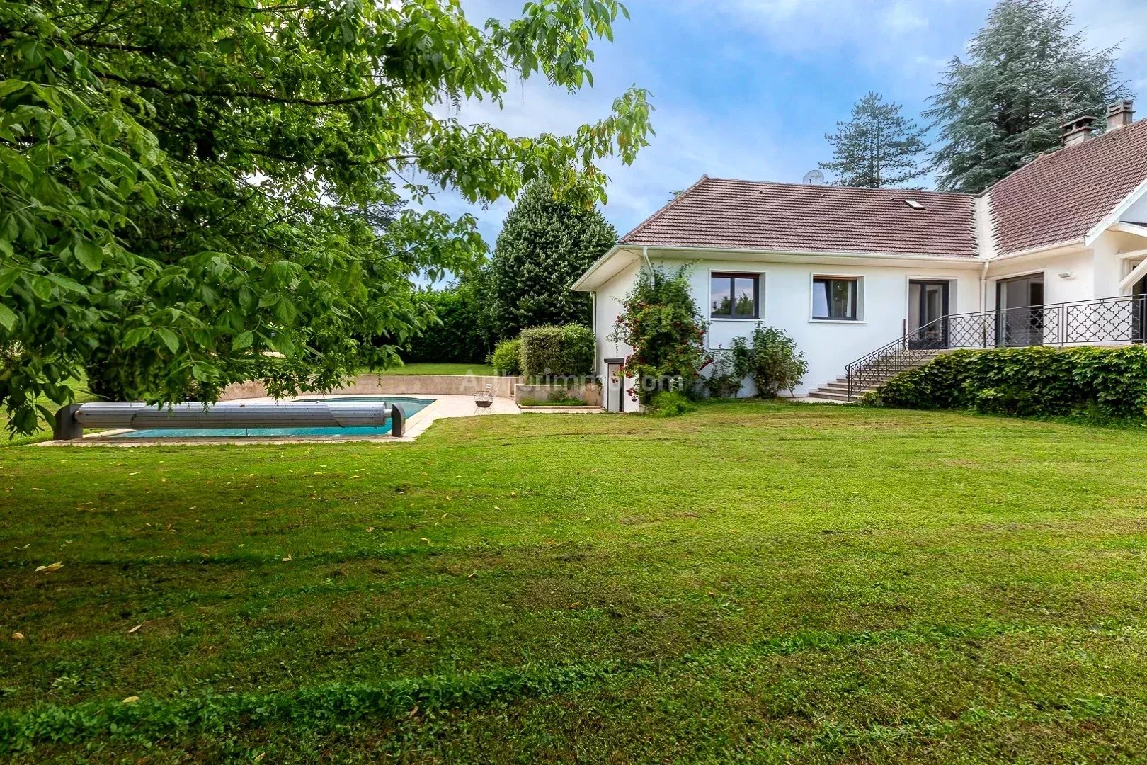 Dans un cadre privilégié, magnifique villa 6 chambres, à deux pas du centre ville de BELLEY, 195 m² habitables environ (+ annexe aménagée de 40 m²), cadastrée sur 3071 m² de terrain clos.