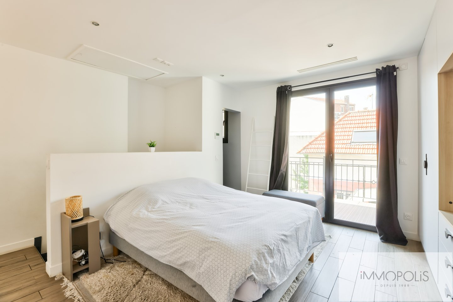 Villa Étienne Marey, Paris XXe. En exclusivité, Immopolis vous présente une maison pleine de charme, entièrement rénovée, nichée dans un environnement exceptionnel : la Villa Étienne Marey, une impasse pavée au calme absolu, en plein coeur du 20e arrondissement de Paris. D'une superficie d'environ 100 m² répartis sur trois niveaux, ce bien rare offre des prestations de qualité et une distribution optimale des espaces. Rez-de-chaussée : Une première chambre de 11m², une salle de bains de 4,48 m², des toilettes séparées, une seconde chambre de 11 m² (ventilée sans ouvrant et bénéficiant d'une belle lumière zénithale), ainsi qu'une buanderie et un cellier. Premier étage : Une vaste pièce de vie de 30 m², baignée de lumière, ouvrant sur une agréable terrasse de 10,8 m² exposée sud-est et sans vis-à-vis. Une cuisine ouverte entièrement équipée complète ce niveau. Dernier étage : Une suite parentale d'environ 23 m² avec salle d'eau, WC, dressing et coin bureau. Cette chambre donne également accès à une seconde terrasse de 8 m², offrant une vue dégagée sur les toits de Paris. La maison bénéficie d'une excellente isolation thermique, de dressings sur mesure, de la climatisation réversible et d'un système d'alarme. Située à proximité immédiate du métro lignes 3 et 7bis, entre la place Édith Piaf et Pelleport, Dans le prolongement de la Campagne à Paris, cette maison offre un cadre de vie unique, à la fois paisible et proche de toutes les commodités. Un bien rare sur le marché parisien, à découvrir sans tarder.