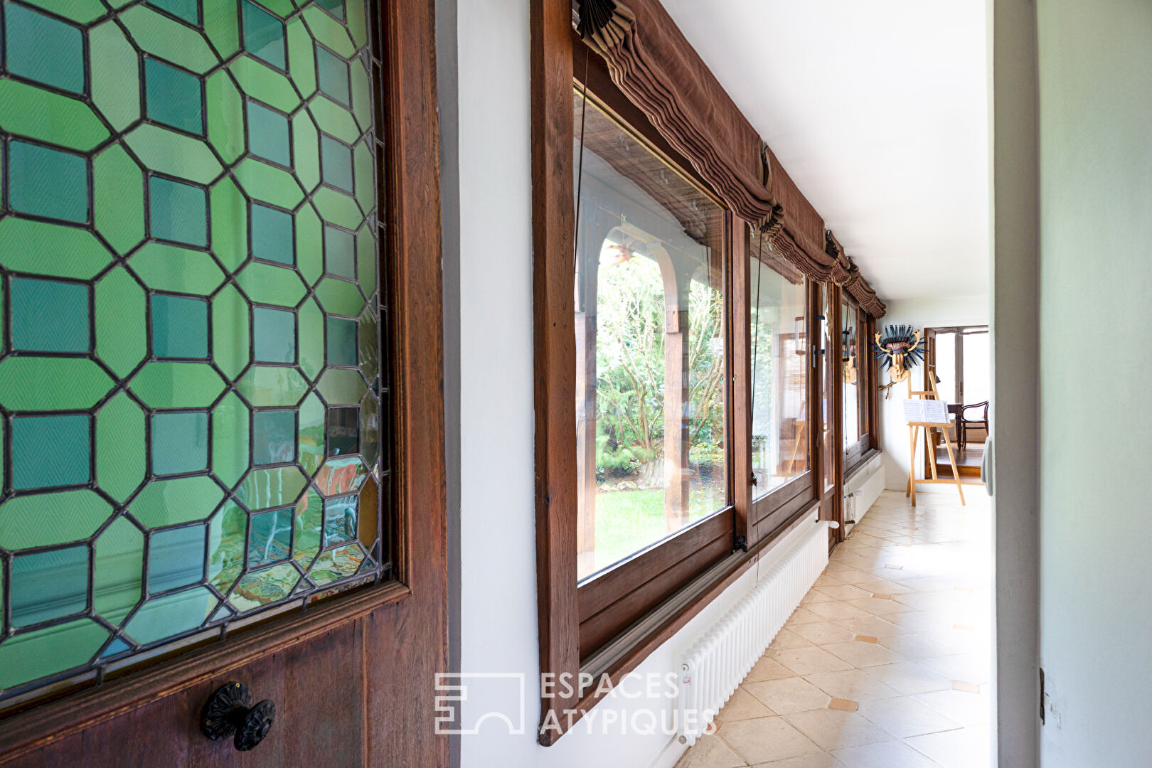 Cette demeure familiale est nichée au coeur d'un quartier très recherché de Mantes la Jolie, prés des écoles et des commerces du centre ville, et à quelques pas des promenades des Rives de Seine. Chargée d'histoire, elle fut maison religieuse au 18e siècle, hôpital militaire, sous-préfecture sous Napoléon, restaurant en 1990 avant de se convertir en confortable maison de famille. Édifiée sur un jardin clos paysagé de 867 m2 plein sud, façon jardin de curé avec petit cours d'eau et piscine, la bâtisse de plus de 350 m2 propose un plan en L complètement tourné vers le jardin et sans vis à vis pour une discrétion optimale. Un vrai microcosme végétal en centre ville. Son rez de chaussée offre de nombreux espaces de vie lumineux, fonctionnels et entièrement tournés vers le jardin. On y trouve une spacieuse entrée ainsi qu'un vestibule très pratique pour les familles nombreuses et une salle d'eau / WC invités. Une grande cuisine et arrière cuisine dinatoire prolongée par une buanderie. Puis deux grandes pièces de réception: une salle à manger avec coin cheminée attenante à la cuisine et un très agréable salon baigné de lumière par de grandes baies qui offrent une vue bucolique sur le jardin paysagé. Ce niveau est complété par un grand bureau qui dessert une chambre au-dessus. Au premier étage, un palier dessert un vaste dressing, la chambre parentale avec cheminée décorative en marbre. Deux chambres en enfilade et une salle de bains avec douche et baignoire complètent cet étage. Au deuxième niveau, c'est l'espace des enfants qui s'exprime ! Une immense salle de jeux commune de près de 40 m2 agrémentée d'une mezzanine dessert deux belles chambres et une salle de bains. Enfin, on trouve en sous-sol une triple cave dont la chaufferie et une cave à vin, et au fond du jardin, une dépendance et un garage avec accès sur rue. Parquets, poutres, tomettes, cheminées anciennes, proximité de l'hyper-centre et des écoles sont de nombreux atouts qui en font un bien atypique ! Commerces, écoles et collège / lycée privé à 3 mn à pieds Gare SNCF à moins de 10 mn à pieds Axe A13 à 4 mn en voiture CLASSE ENERGIE: D- CLASSE CLIMAT: D Montant moyen estimé des dépenses annuelles d'énergie pour un usage standard, établi à partir des prix de l'énergie de l'année 2021 : entre 4060 et 5530 euros Contact Katia : 07 66 26 91 38 Katia ROCCHIA (EI) Agent Commercial - Numéro RSAC : 432873586 - Versailles.
