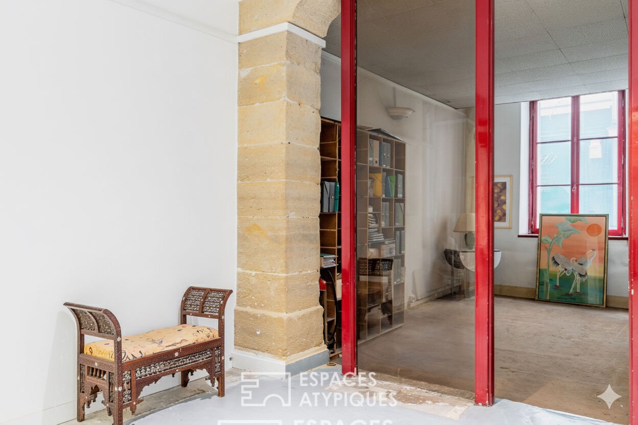 Situé au coeur d'une des rues les plus prisées de la Rive Gauche, ce local de 84 m² Carrez prend place au rez-de-chaussée d'un bel immeuble du XVIIIème siècle. Ce bien rare, actuellement exploité en profession libérale, offre un potentiel de réhabilitation total pour les amateurs de lieux de vie uniques ou les projets mixtes en quête d'une adresse prestigieuse. L'espace intérieur se dévoile comme une véritable page blanche aux volumes généreux. Dès l'entrée, le regard est captivé par le dialogue entre les éléments d'origine et une architecture industrielle subtile. Une verrière zénithale à structure bois baigne de lumière naturelle une vaste pièce de vie, soulignée par une colonne en pierre de taille massive. En retrait, une pièce plus intime révèle tout le cachet de l'ancien avec ses murs en pierres apparentes et ses poutres séculaires, offrant un cadre authentique. L'agencement actuel permet une distribution fluide, facilement modulable pour créer un loft contemporain au calme absolu. Son environnement urbain est un atout majeur. A quelques pas des célèbres galeries d'art de Saint-Germain-des-Prés, le quartier regorge d'écoles de renom. Le Jardin du Luxembourg offre un écrin de verdure à proximité immédiate. Ce lieu de caractère séduit par son esprit atelier dans un secteur ultra-convoité. Métro : Saint-Sulpice (ligne 4) / Métro : Mabillon (ligne 10) Contact : Marie-Pierre - 07 63 92 19 75 - RSAC : 809 218 316 Paris Copropriété de 7 lots (Pas de procédure en cours). Charges annuelles : 2800 euros. Marie-Pierre CASULA (EI) Agent Commercial - Numéro RSAC : 809 218 316 - Paris.