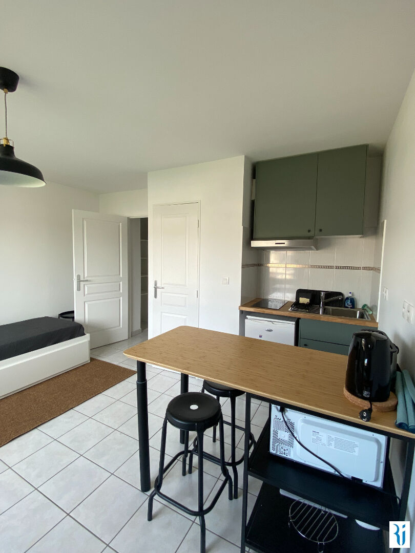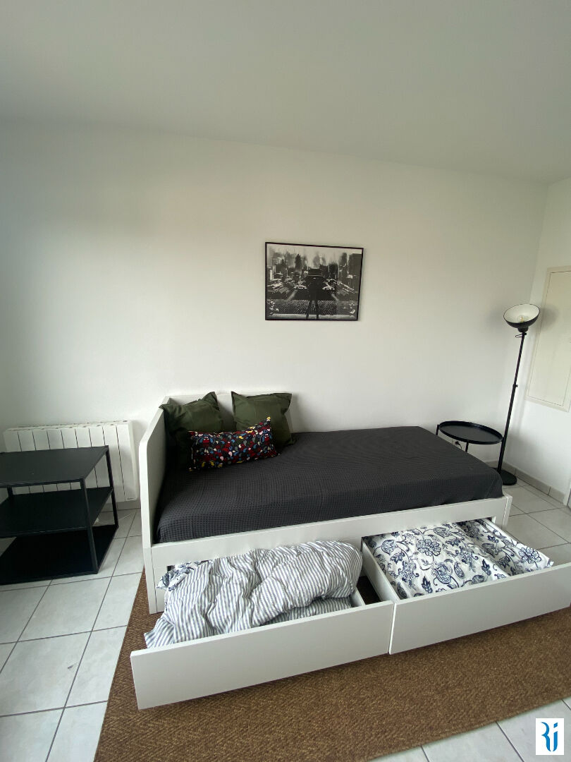 A COTE DE LA GARE DE ROUEN - rue du Champs des Oiseaux STUDIO MEUBLE de 21,69 m², situé dans une résidence récente et sécurisée, au 4ème étage avec ascenseur, comprenant : une entrée avec placard, séjour avec cuisine aménagée et équipée, salle de douches. + Possibilité de louer 1 Place de parking en sous-sol pour 80 euros en sus par mois. Chauffage individuel électrique + eau individuelle. Disponible dès maintenant.