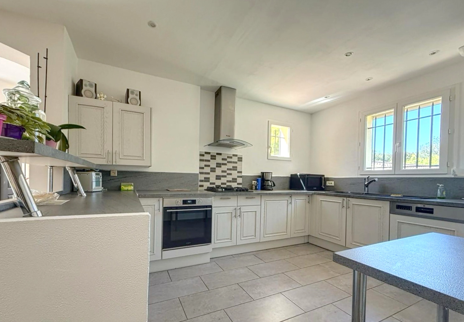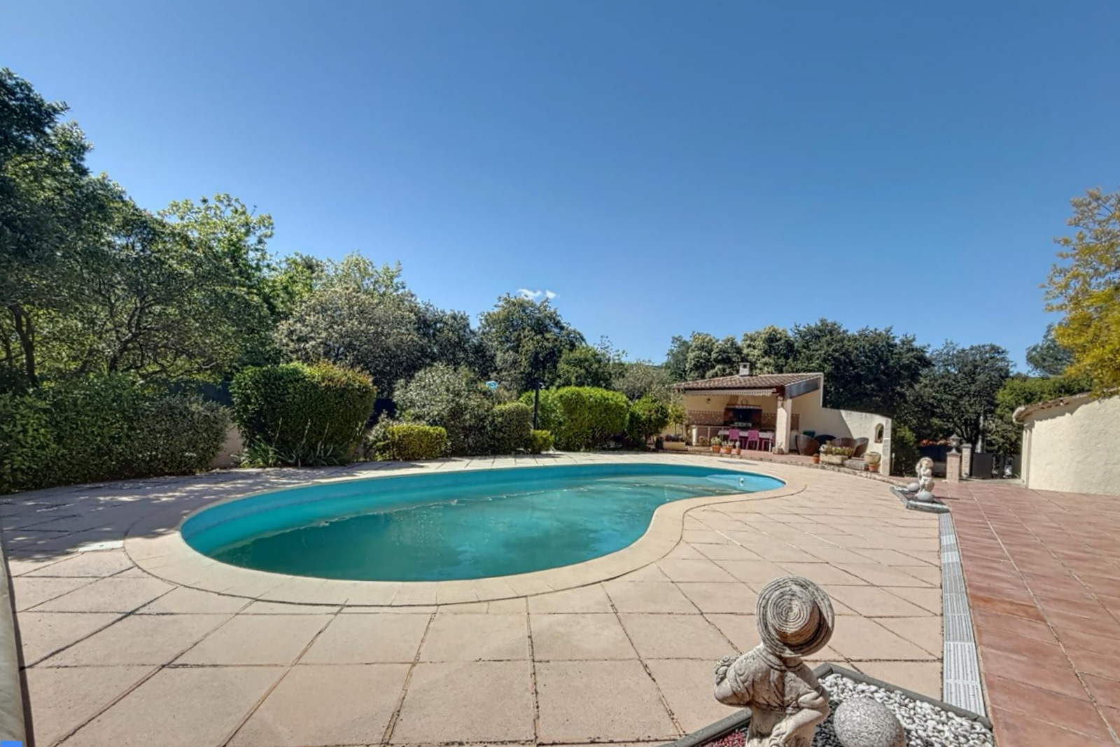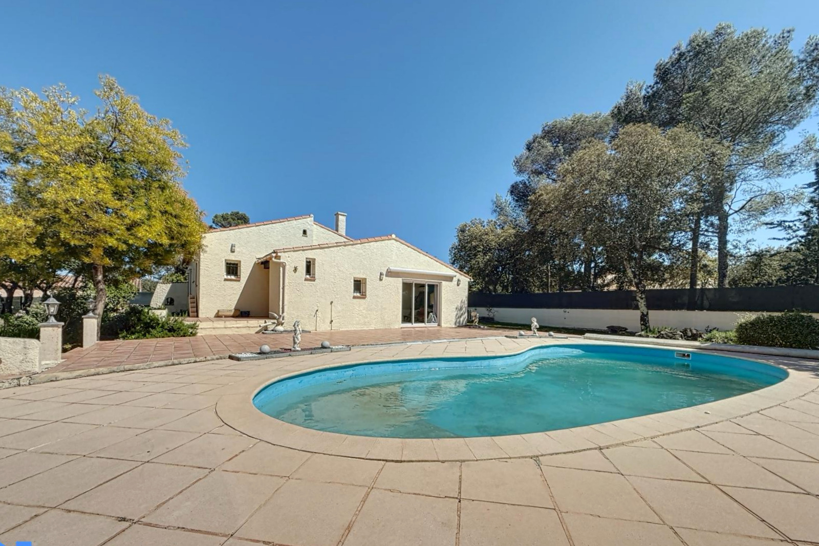 A vendre, en exclusivité avec vos agences SWEET HOME, sur la commune de Garéoult, dans un quartier recherché, au calme absolu, édifiée sur un superbe terrain de 1870m², aménagé, clos et arboré, villa de construction traditionnelle de 120 m², de plain pied, en parfait état et offrant des prestations actuelles, se composant d'une entrée, d'un salon, d'une cuisine ouverte sur séjour, de trois chambres dont une avec salle d'eau privative, d'une salle de bains et d'un wc indépendant. A l'extérieur vous y retrouverez un très bel espace piscine avec cuisine d'été et un double garage de 36m². Micro station d'épuration, vmc double flux, climatisation réversible, poêle à granules etc...