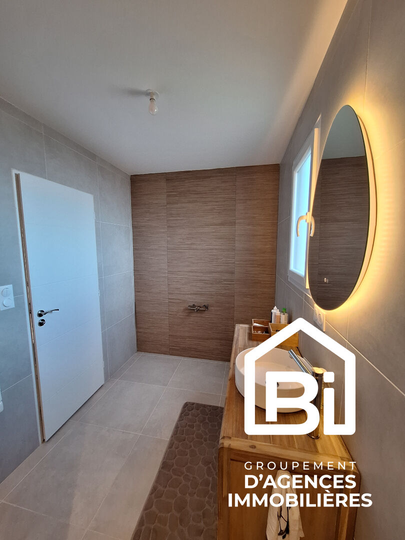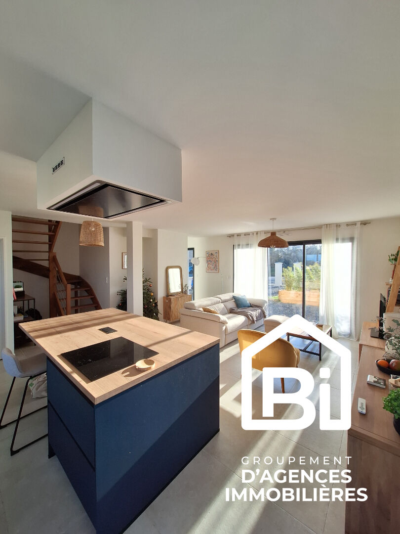 Maison livrée en 2025, avec de belles prestations ; Vaste séjour très lumineux avec cuisine aménagée et équipée avec ilot central ; 3 chambres à l'étage, grande salle de bains (douche et emplacement baignoire) avec WC ; garage, et jardin exposé au sud ; tous les avantages du neuf : pompe à chaleur, chauffage au sol, conduit de cheminée prêt pour l'installation d'un poêle à bois, adoucisseur, domotique ; Environnement agréable, au calme, avec une vue sur la mer ; (5.69 % honoraires TTC à la charge de l'acquéreur.)