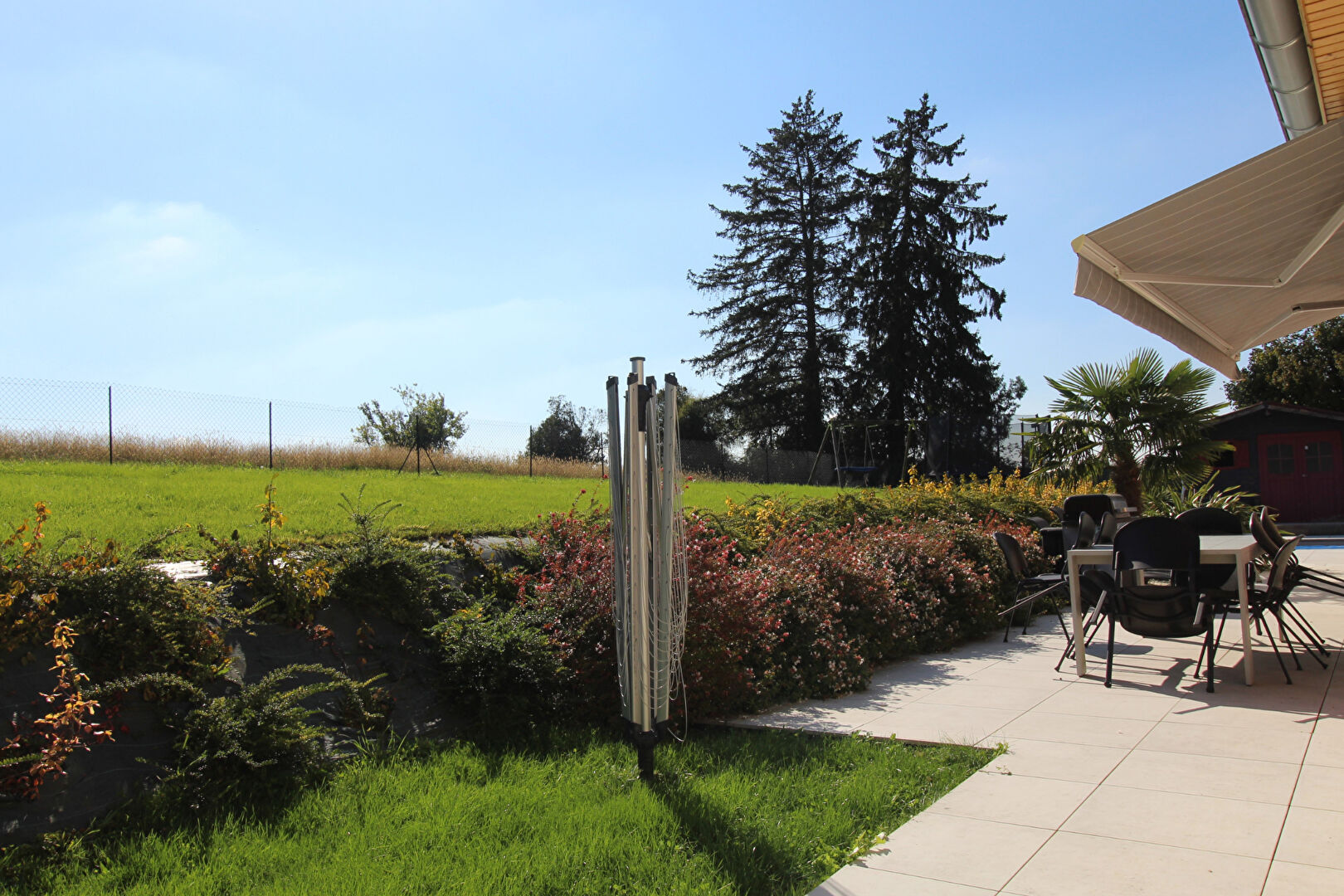 A vendre Les clefs E-mmobilières, MAISON 2015 individuelle plain-pied 145m² habitables, 4 chambres sur 1273m² de terrain. DPE : B Village avec écoles, collège, commerces, gare...25 mn de Bourg-en-Bresse 01, 30 mn de Lons-Le-Saunier 39000. Découvrez cette superbe maison de plain-pied alliant confort, modernité et luminosité. Contacter Rachele Mazzola (EI) au 06.48.27.61.47, représentante commerciale enregistrée au RSAC sous le numéro 829126754 à Lons-le-Saunier. Dès l'entrée avec placard, laissez-vous séduire par une vaste pièce de vie de 44 m² comprenant une cuisine contemporaine avec îlot central, un espace repas et un salon chaleureux, une véranda ouverte sur une terrasse ensoleillée et sa piscine creusée. Vous profiterez également d'un cellier attenant à la cuisine et d'un WC séparé. L'espace nuit offre 4 chambres, 3 avec placard, une chambre avec double dressing ainsi qu'une salle de bain élégante équipée d'une baignoire et d'une douche à l'italienne. Implantée sur un terrain clos et paysagé de 1 238 m², cette maison dispose d'une piscine 7x3,5 (traitement au chlore, pompe à chaleur), d'un chalet de jardin et d'un portail motorisé. Côté confort : chauffage au sol gaz de ville, chauffe-eau thermodynamique, pompe à chaleur dans le séjour, adoucisseur d'eau, huisseries PVC double vitrage et volets roulants motorisés. Assainissement collectif. Une maison clé en main, idéale pour profiter pleinement d'un cadre de vie agréable et sans compromis. Honoraires sont charge vendeurs. Les informations concernant les risques associés à ce bien sont disponibles sur le site Géorisques : www.georisques.gouv.fr. Rachèle MAZZOLA (EI) Agent Commercial - Numéro RSAC : 829 126 754 - LONS le SAUNIER.