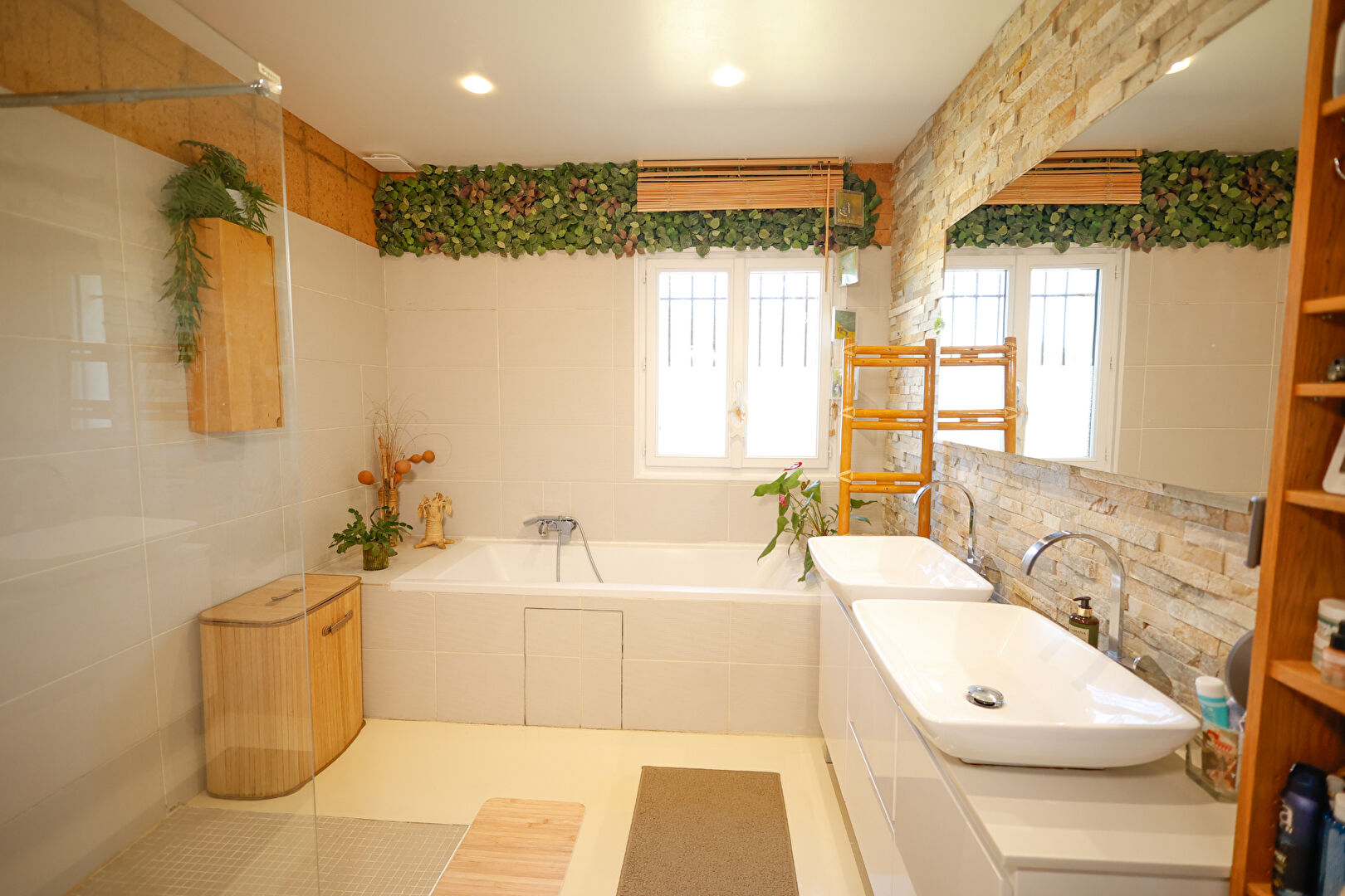 Sur les hauteurs paisibles de Simiane-Collongue, cette propriété singulière est une véritable opportunité pour un projet familial, intergénérationnel ou locatif, offrant à la fois de l'espace, de l'intimité et un cadre de vie privilégié. Implantée sur un vaste terrain arboré de 4 200 m², elle se compose de deux habitations attenantes d'environ 125 m² chacune, baignées de lumière tout au long de la journée. La première maison propose une cuisine ouverte sur un grand séjour lumineux, un salon chaleureux, deux chambres, dont une avec salle d'eau privative, ainsi qu'un espace modulable pouvant être divisé pour créer une troisième chambre. Une salle de bains et un WC indépendant complètent ce niveau. A l'extérieur, vous profitez d'une piscine traditionnelle 9x4,5 m et d'un pool house cadastré d'environ 20 m², parfait pour partager des instants conviviaux en famille ou entre amis. La seconde maison dispose d'une cuisine équipée ouverte sur le séjour, d'un salon accueillant, de trois chambres, d'une salle d'eau et d'un WC séparé. Elle bénéficie également de sa propre piscine hors sol et d'un pool house cadastré d'environ 20 m², créant un véritable espace de vie indépendant. Atout rare : les deux habitations sont actuellement réunies sous un seul compteur, par conséquent il est tout à fait envisageable, en abattant une simple cloison, d'en faire une seule et grande maison familiale de plus de 250 m². Côté prestations extérieures, un garage accès intérieur avec cave attenante, un grand parking, un terrain de boules, un espace potager et de nombreux espaces de rangement viennent parfaire l'ensemble. La qualité est au rendez-vous : sols en résine époxy, baies vitrées à galandage, double vitrage aluminium, chauffage électrique à inertie, canal de Provence, et panneaux solaires générant environ 1 800 euros par an de revenus. Avec un DPE classé C et un bilan carbone A, cette propriété se distingue par sa performance énergétique et son confort durable. Mandat : 773 Les honoraires TTC sont à la charge du vendeur. Contactez Thomas Sebaa au 06 84 13 49 73 ou l'agence au 04 42 97 41 85 pour découvrir cette propriété aux multiples possibilités dans un cadre naturel unique.