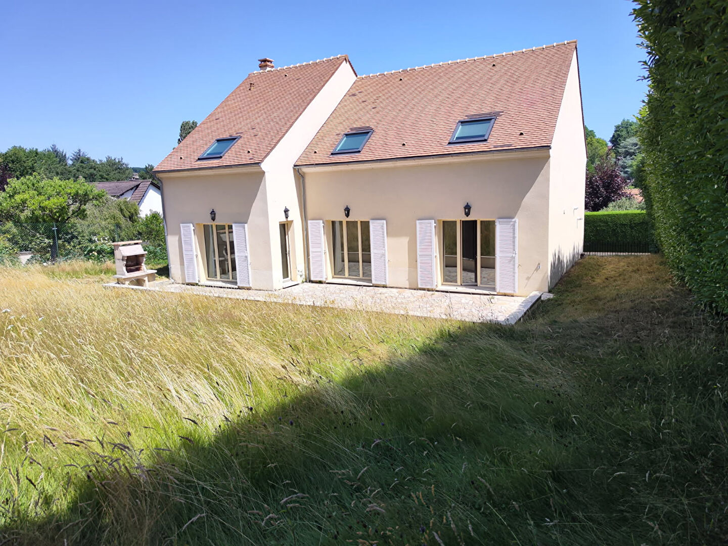 Maison construite en 2001, sur sous-sol total, offrant de très beaux espaces à vivre. Au RDC, l'entrée avec placards et toilettes vous mène au double séjour de 52m² avec cheminée, exposé sud-ouest, et donnant de plain pied sur la terrasse et le jardin. La cuisine dinatoire de près de 19m² donnent également sur le terrasse et le jardin et peut être ouverte sur le séjour. Au même niveau, une chambre de 18m², avec sa salle d'eau attenante. A l'étage, entièrement parqueté, palier, salle d'eau, toilettes, 4 chambres, dont 2 de 19 et 20m² avec salle de bains attenantes. Sous-sol total, avec 2 grandes caves pouvant devenir salle de sport ou salle de jeux et grand garage 4 voitures. A 5mn du centre ville, à 10 mn des écoles et de la gare pour Paris Saint Lazare et La Défense. (3.00 % honoraires TTC à la charge de l'acquéreur.)