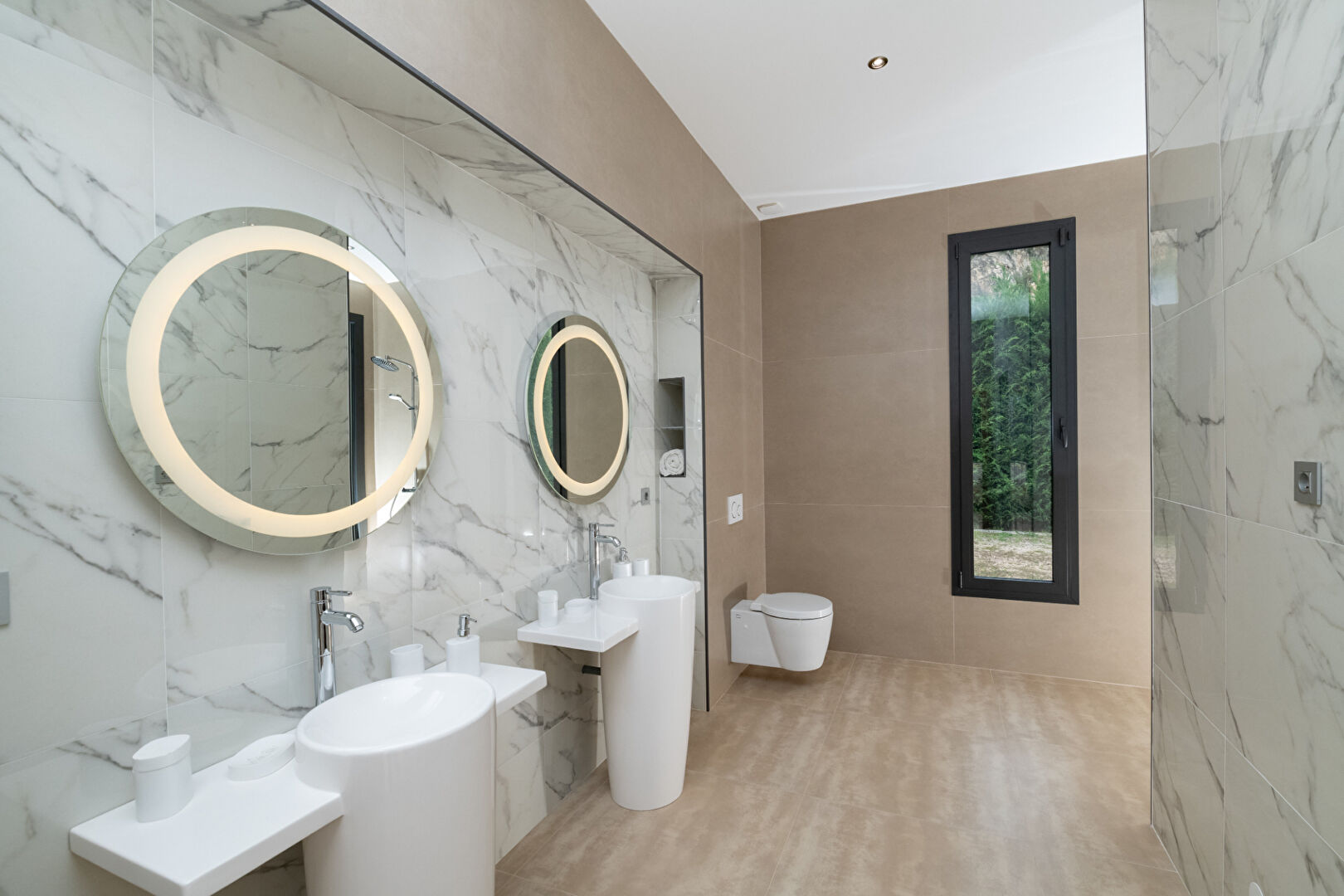L'agence du Sud vous propose à Auriol une propriété rare, pensée comme une véritable villa de réception : 272 m² habitables, de superbes volumes baignés de lumière, des prestations haut de gamme, le tout au coeur d'un écrin paysagé d'environ 5 000 m², dans un environnement calme et verdoyant. Idéalement située, la villa bénéficie d'un accès rapide vers Aix?en?Provence, Marseille et le littoral, tout en restant proche des commodités. Le golf de la Sainte?Baume se trouve également à proximité. Les points forts : Demeure de prestige ? 5 pièces ? 272 m² Terrain paysagé env. 5 000 m² Piscine 10 x 4,5 m + pool house Séjour exposé SUD Prestations premium : chauffage au sol, climatisation gainable, aspirateur central, panneaux solaires Sous?sol complet : vaste garage, rangements, salle de sport 3 chambres + grande pièce sous combles d'environ 80 m² (idéal suite, salle de jeux, bureau, home?office, etc.) Agencement : Dès l'entrée, la maison dévoile un vaste espace de vie particulièrement lumineux, composé d'un salon / salle à manger avec cheminée et espace home cinéma, ouvrant sur les terrasses et le jardin. La cuisine indépendante est équipée en électroménager haut de gamme (Gaggenau) et dispose d'un coin repas, parfait pour le quotidien comme pour recevoir. Espace nuit (rez?de?chaussée) Le rez?de?chaussée accueille 3 chambres, dont une suite parentale avec dressing, rangements intégrés et salle de bains (double vasque, douche, WC). Une seconde salle d'eau ainsi que des toilettes séparées complètent ce niveau. A l'étage Une mezzanine aménagée (salon/bibliothèque/bureau) surplombe le séjour et mène à une très grande pièce sous combles d'environ 80 m², offrant de multiples possibilités d'aménagement selon vos projets. Sous?sol et équipements Vaste garage, espaces de rangement, salle de gym, et équipements de confort modernes : chauffage au sol, climatisation gainable, aspirateur central, panneaux solaires. Extérieurs : L'extérieur a été conçu pour profiter pleinement des beaux jours : piscine 10 x 4,5 m, pool house, terrasses (dont une partie abritée) et espaces de détente au calme. Informations complémentaires : Prix : 1 490 000 euros (honoraires à la charge du vendeur) Taxe foncière : 3 900 euros DPE (nouvelle étiquette) : A ? 66 kWhEP/m²/an | GES : A ? 2 kgCO?/m²/an Estimation des dépenses énergétiques : entre 1 690 euros et 2 340 euros/an (usage standard, abonnements compris). Les informations sur les risques auxquels ce bien est exposé sont disponibles sur le site Géorisques. Une grande partie du mobilier haut de gamme pourra être incluse dans la vente (selon condition à définir). Contact : Serge RACT?MUGNEROT ?? 06 I 73 I 73 I 71 I 72 Auriol, Provence ? Exceptional Contemporary Villa (272 sqm) ? 5,000 sqm landscaped grounds ? Pool et pool house Agence du Sud is pleased to present this outstanding contemporary property in Auriol (Provence), set in a peaceful green environment with quick access to Aix?en?Provence, Marseille and the coast. Offering approximately 272 sqm of living space (about 2,928 sq ft) on around 5,000 sqm of landscaped grounds (about 1.24 acres), this villa combines refined finishes, generous volumes and a superb outdoor lifestyle. Key features Bright reception area: spacious living/dining room with fireplace and home cinema area Separate high-end kitchen, fully fitted and equipped (premium appliances) Ground floor sleeping area: 3 bedrooms, including a beautiful master suite with dressing room and full bathroom (double vanity, shower, WC) + a second shower room and separate guest WC Upstairs: mezzanine (lounge/office/library) overlooking the living room + a large under?eaves room of approx. 80 sqm, ideal as an additional bedroom suite, games room, studio or home office Full basement: large garage, storage areas, gym Comfort et efficiency: underfloor heating, ducted air-conditioning, central vacuum system, solar panels Outdoor lifestyle: swimming pool (10 x 4.5 m) and pool house, terraces and relaxation areas Practical information Asking price: euros1,490,000 (seller's fees) Property tax: euros3,900 Energy performance (France): DPE A (66 kWhEP/sqm/year) ? GHG emissions: A (2 kgCO?/sqm/year) Estimated annual energy cost: euros1,690 to euros2,340 (standard use, subscriptions included). Information on natural/technological risks is available on the French official website ?Géorisques'. Serge RACT (EI) Agent Commercial - Numéro RSAC : - .