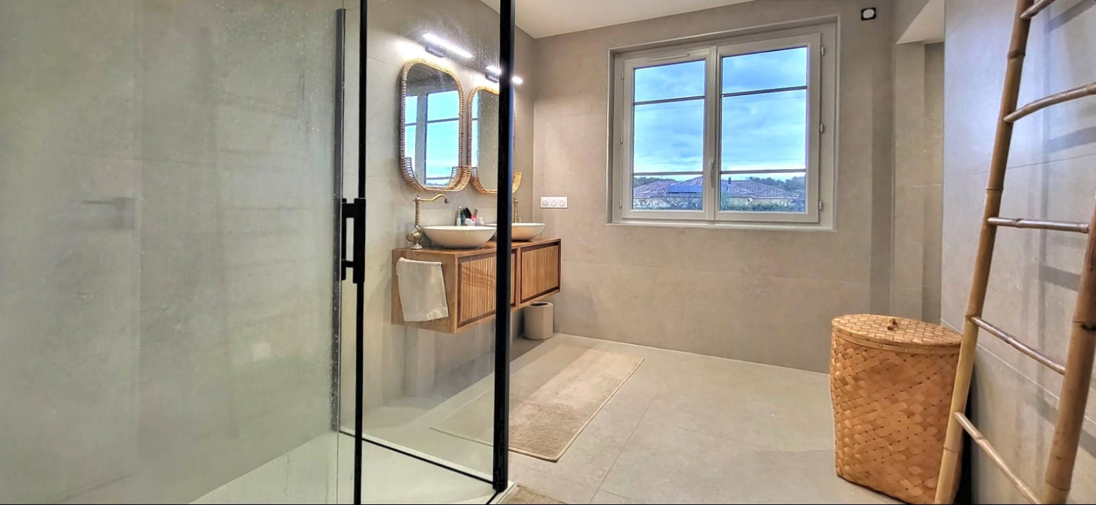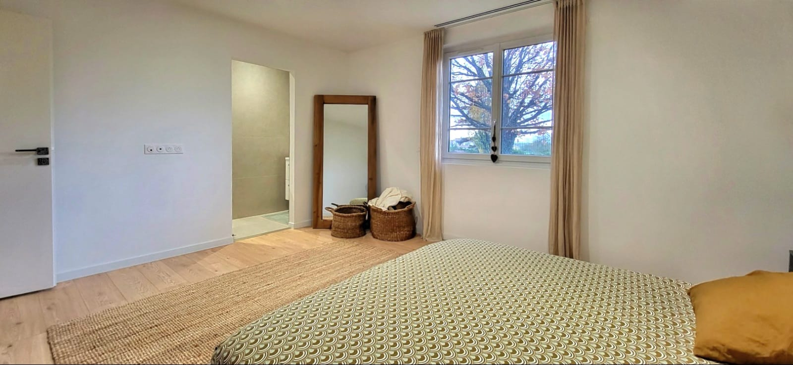 Votre agence EVE Immobilier vous propose en exclusivité sur les hauteurs de Roussillon située dans un environnement résidentiel calme et recherché, cette maison individuelle 6 pièces de 140 m² entièrement rénovée de plain-pied, édifiée sur sous-sol complet avec combles aménageables, le tout sur son terrain de 1 140 m² piscinable. Dès l'entrée, vous serez séduit par les volumes et la luminosité. La maison se compose d'une entrée avec placard, ouvrant sur un vaste séjour / salle à manger avec cuisine entièrement équipée d'environ 50 m², agrémenté d'une cheminée et bénéficiant d'une exposition plein sud, idéale pour profiter d'un ensoleillement optimal toute l'année. L'espace nuit comprend 4 chambres, dont une suite parentale avec salle d'eau privative, une buanderie sur mesure, une salle d'eau avec WC, ainsi qu'un WC indépendant. Prestations de qualité : Huisseries PVC double vitrage avec moustiquaires Chauffage par pompe à chaleur gainable Rénovation complète, aucun travaux à prévoir Sous-sol complet offrant de nombreuses possibilités (garage, atelier, stockage?) A l'extérieur, le terrain plat et arboré de 1 140 m², entièrement exploitable, permet l'implantation d'une piscine et d'espaces de détente dans un cadre paisible. Situation et commodités : Commerces de proximité à 5 minutes Écoles (maternelle, primaire, collège) : 5 minutes Gare SNCF de Péage De Roussillon : 10 minutes Accès autoroute A7 : 10 minutes