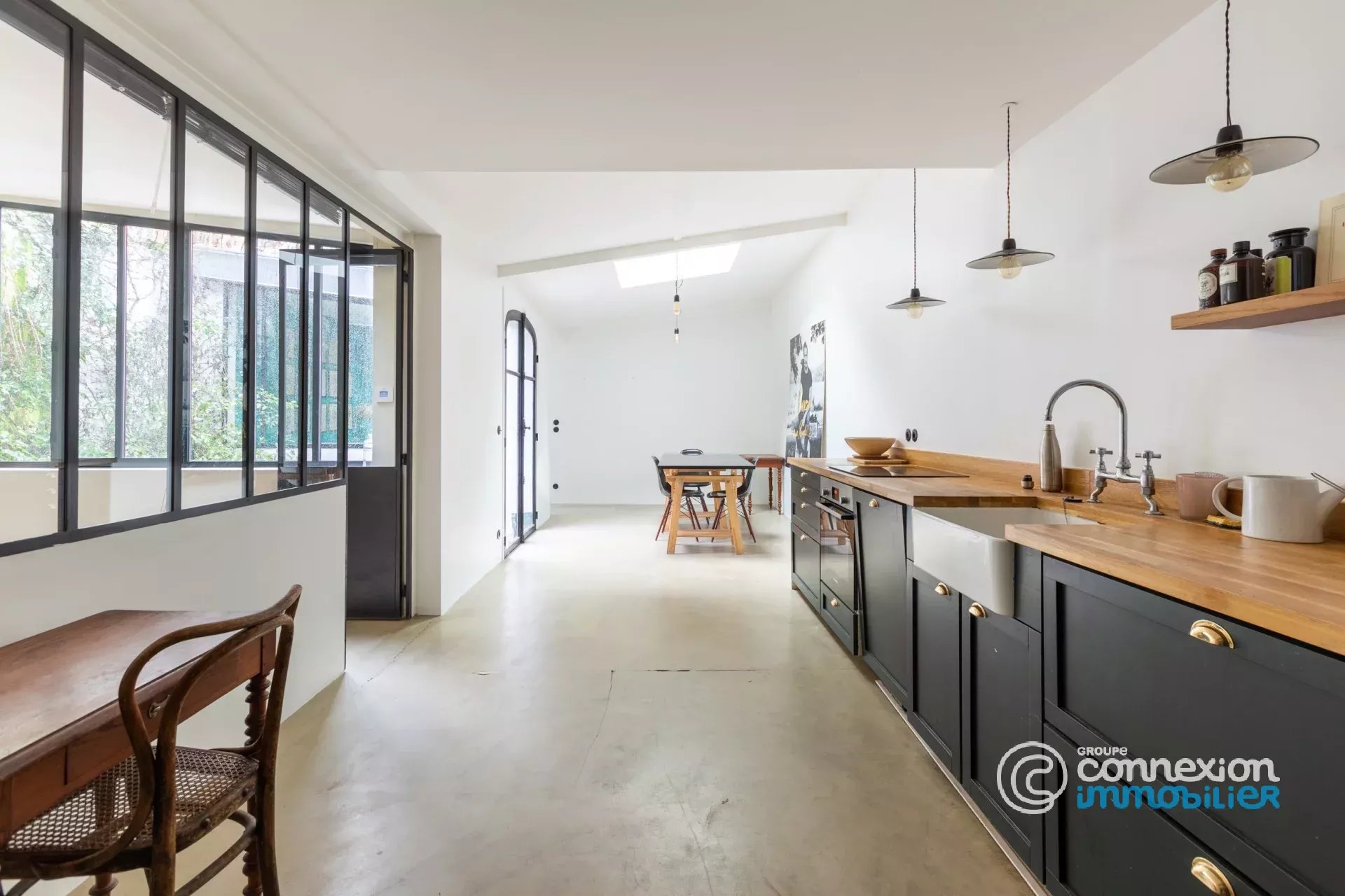 Rare à Paris. A deux pas du Parc Georges Brassens et de la rue de la Convention, dans une rue calme, maison de 8 pièces sur 3 niveaux qui se compose au rez-de-chaussée, d'une buanderie et d'un WC séparé, au premier étage d'un double séjour avec cuisine ouverte donnant sur une terrasse avec vue sur jardin, d'un WC séparé. A l'étage supérieur, de trois chambres dont une avec salle de bains attenante, d'une salle de douche et d'un WC séparé. Parquet d'origine, cheminées. Traversant. L'ancien garage au RDC a été aménagé en un loft de 4 pièces composé d'un grand séjour avec cuisine US, de deux/trois chambres dont une avec salle de bains, d'une salle d'eau et d'un WC séparé. Terrasse sur jardin. Lumineux grâce aux verrières et puits de lumière zénithaux. Possibilité de réunir les deux espaces ou de louer le loft. Plan modulable. Maison ayant appartenu à Georges Brassens.