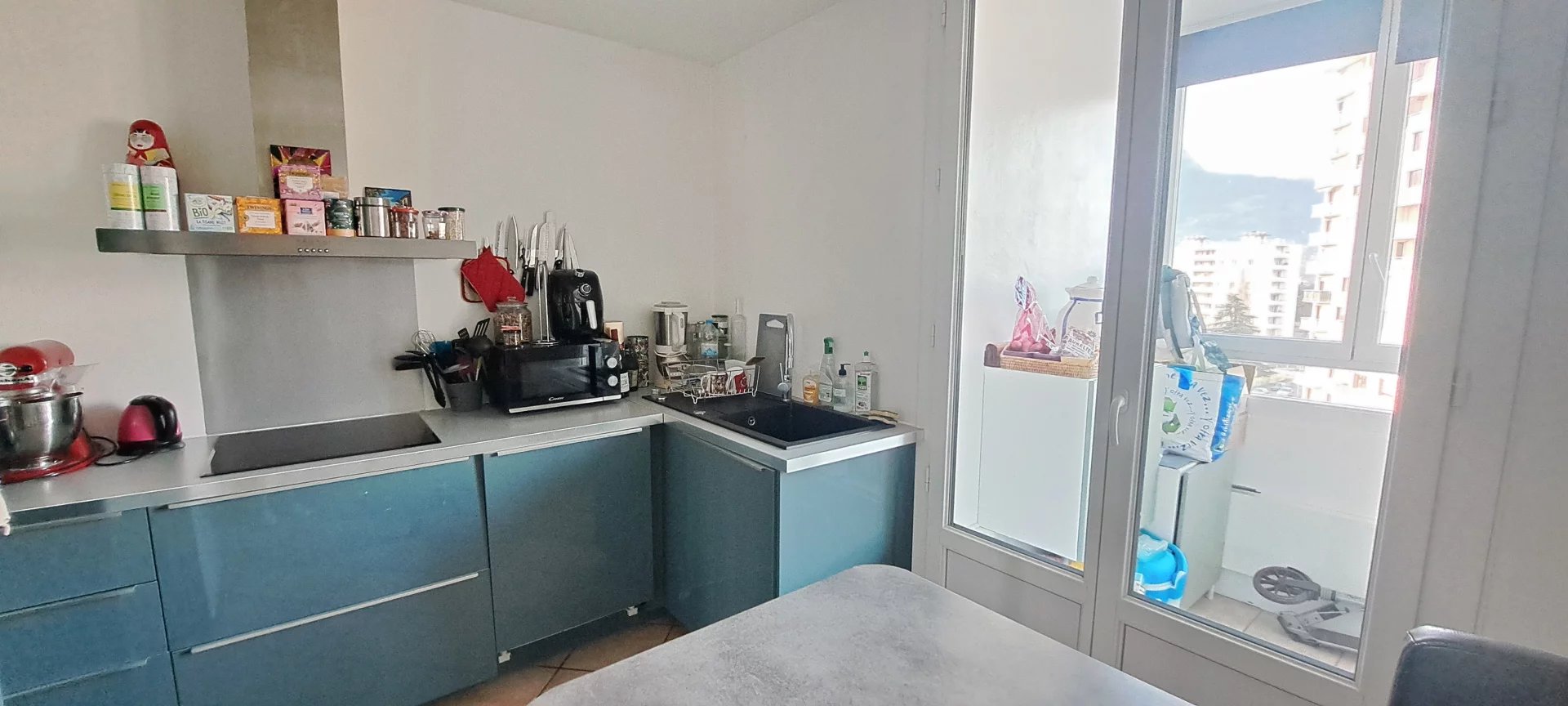 ESPACE IMMO 38 - Stéphanie STOLTZ (o7 61 29 o1 41) vous propose dans une copropriété fermée avec un grand parc un bel appartement T3 de 66 m2 en étage élevé avec ascenseur en interpalier. Ce bien traversant est/ouest se compose d'une belle pièce de vie lumineuse de 24 m2 avec petit balcon filant exposé est, une cuisine équipée avec loggia fermée et coin buanderie, 2 chambres (possibilité de créer une 3ème chambre), une salle d'eau avec douche et vasque, un wc séparé, rangements. Une cave complète ce bien. Huisseries PVC double vitrage, portail automatique, interphone, parking collectif, garage à vélos, ravalement de façades effectué. A proximité des écoles primaire, collège et lycée, cinéma, tous commerces et accès rocade/autoroute, bus et tramway A. Les charges de copropriété (165€/mois) comprennent le chauffage collectif. Taxe foncière : 1440€ La présente annonce immobilière a été rédigée par Stéphanie, agent commercial en immobilier immatriculé au RSAC de Grenoble sous le numéro 844 305 201. Les honoraires sont à la charge du vendeur. Les informations obligatoires sur les risques auxquels ce bien peut être exposé sont disponibles sur le site Géorisques : www.georisques.gouv.fr