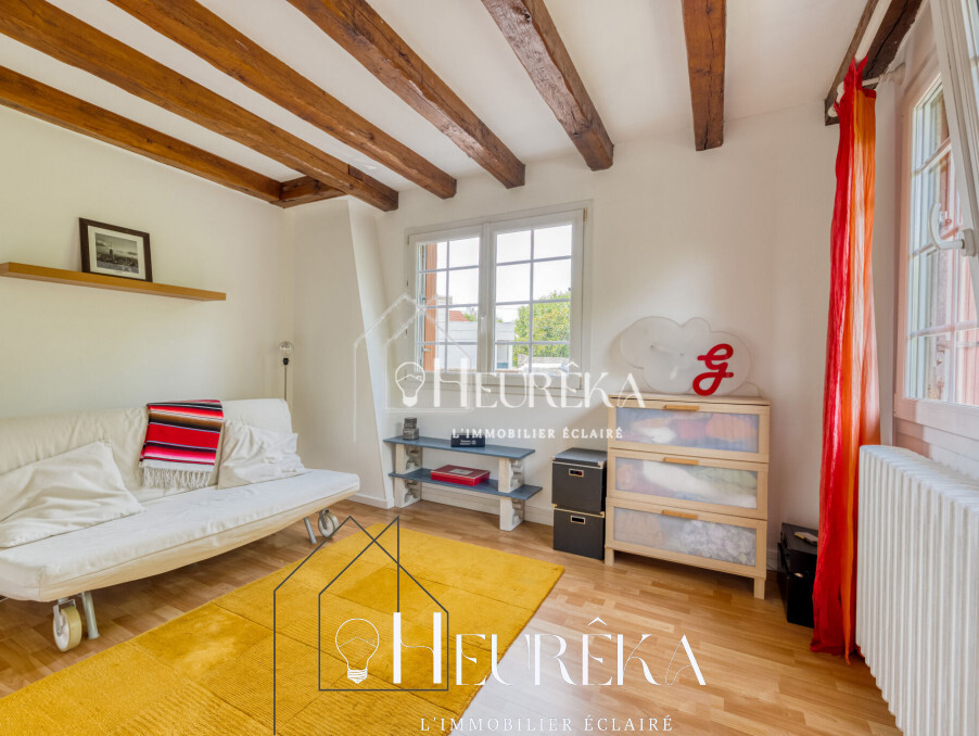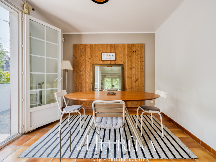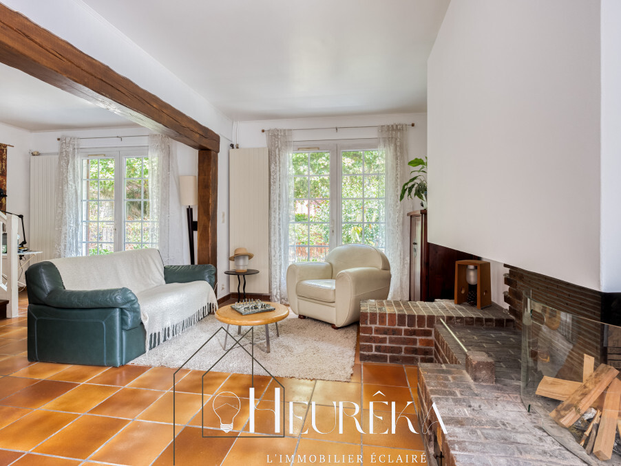 Au rez-de-chaussée, un séjour lumineux de 34 m² avec cheminée s'ouvre sur la terrasse et le jardin, idéal pour profiter des journées ensoleillées.
