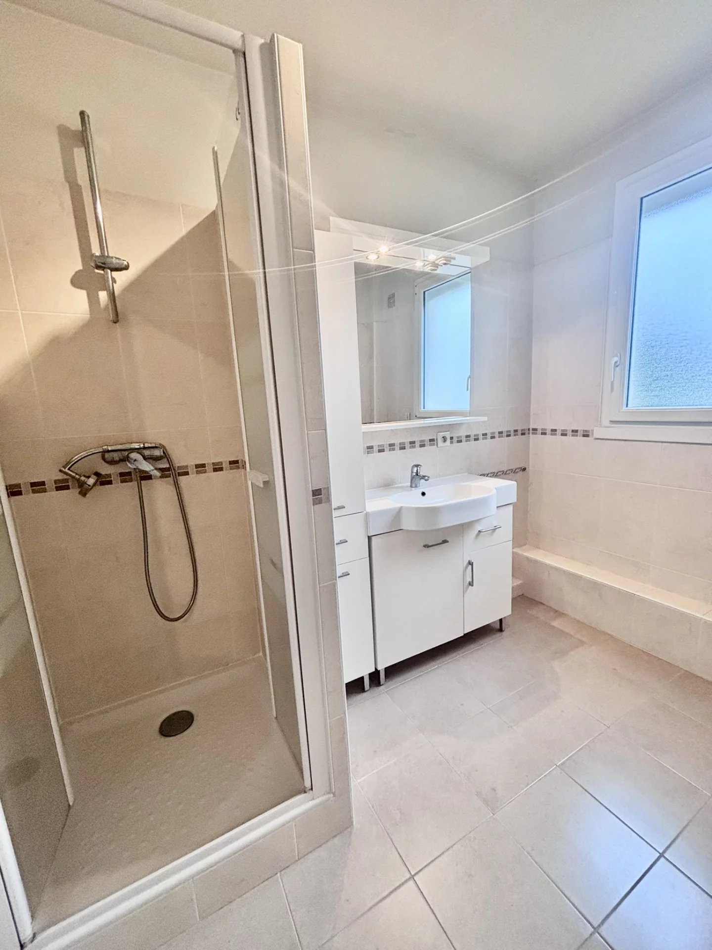 Au calme, dans un batiment de 4 logements, grand appartement moderne de type F1, au rez-de-chaussée, en parfait état comprenant : grande pièce principale (19m2) , cuisine équipée, dégagement avec placards, grande salle d'eau aménagée, WC séparés. Cave et Parking; disponible début Mars