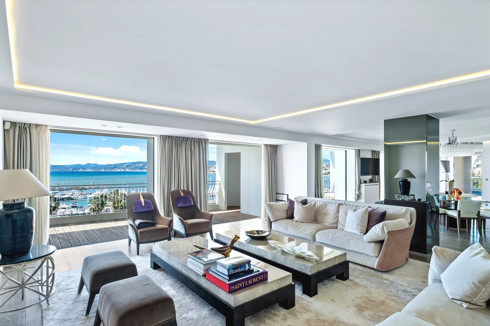 Ce magnifique et somptueux Penthouse en duplex implanté sur la prestigieuse croisette, au sein d'une résidence sécurisée. Il est l'un des biens les plus rares de Cannes, entièrement rénové avec goûts et design signé Pellerin. L'appartement se trouve sur 2 niveaux et s'étend sur 580m2 le tout avec une vue imprenable sur la baie de Cannes, la Méditerranée et L'Esterel. Au 1er étage se trouve un grand séjour, une salle à manger, ainsi qu'une cuisine équipée, 5 chambres en suite dont une somptueuse suite de Maitre. L'étage supérieur nous offre une grande salle de réception avec une cuisine américaine surplombant la Méditerranée, un coin bien-être avec Hammam, sauna et piscine intérieur complète ce bien d'exception. Une magnifique terrasse de 400m2 vous permet de profiter pleinement de ce lieu unique. Plusieurs garages et cave.