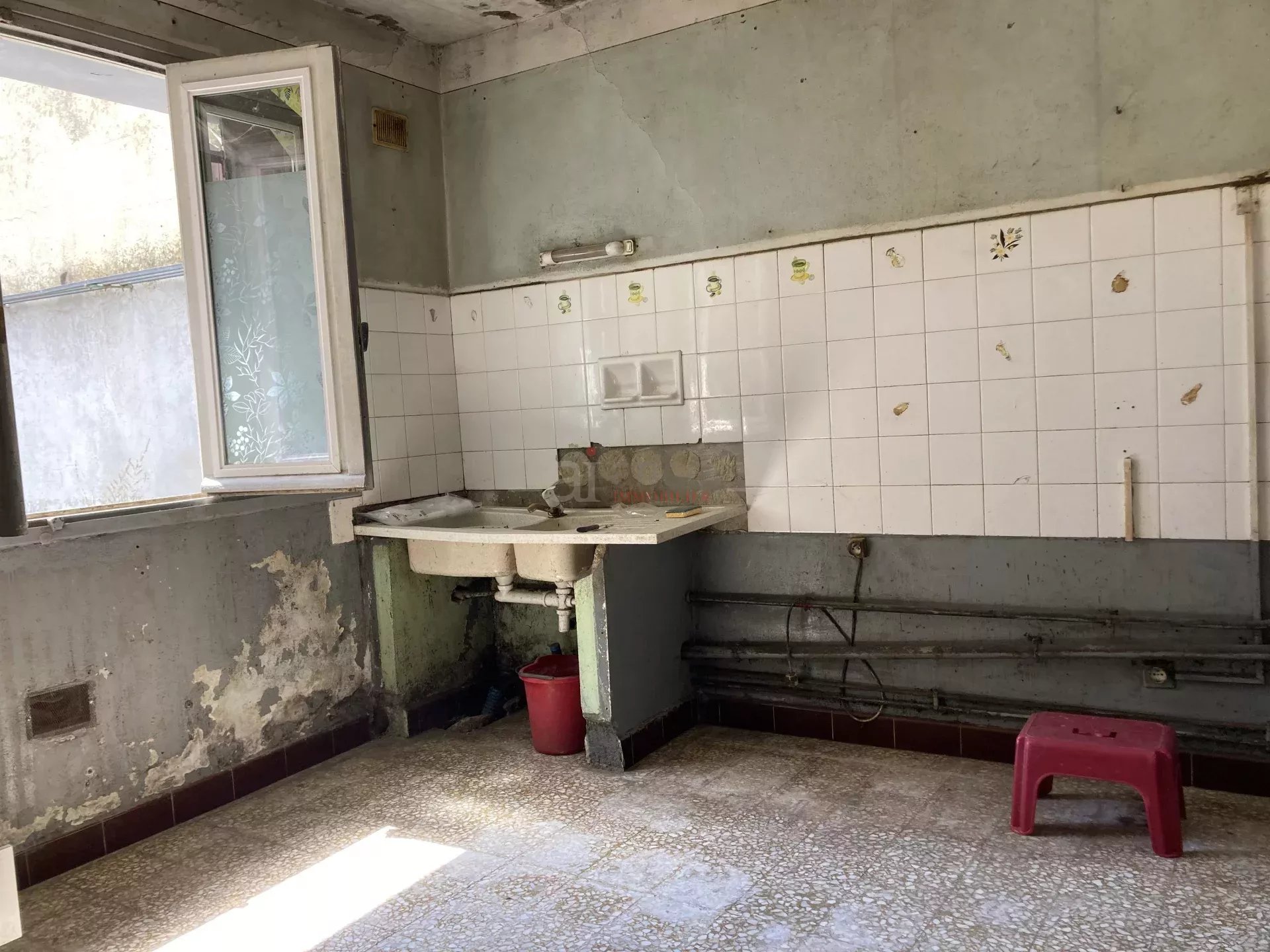 Rare à Ambérieu : située dans un quartier ancien à 5 mn du centre ville, cet ensemble immobilier est constitué d'une maison d'habitation disposant de cuisine et séjour au rez-de-chaussée, 3 chambres et bureau au 1°. Elle est complétée par une belle grange en pierre de 50 m² au sol. Traversante, mitoyenne par la grange et disposant d'une cour elle peut permettre la réalisation d'un beau projet, la grange permettant d'envisager une extension. Gros œuvre en état mais rénovation intérieure complète à prévoir. Bien sans système de chauffage.