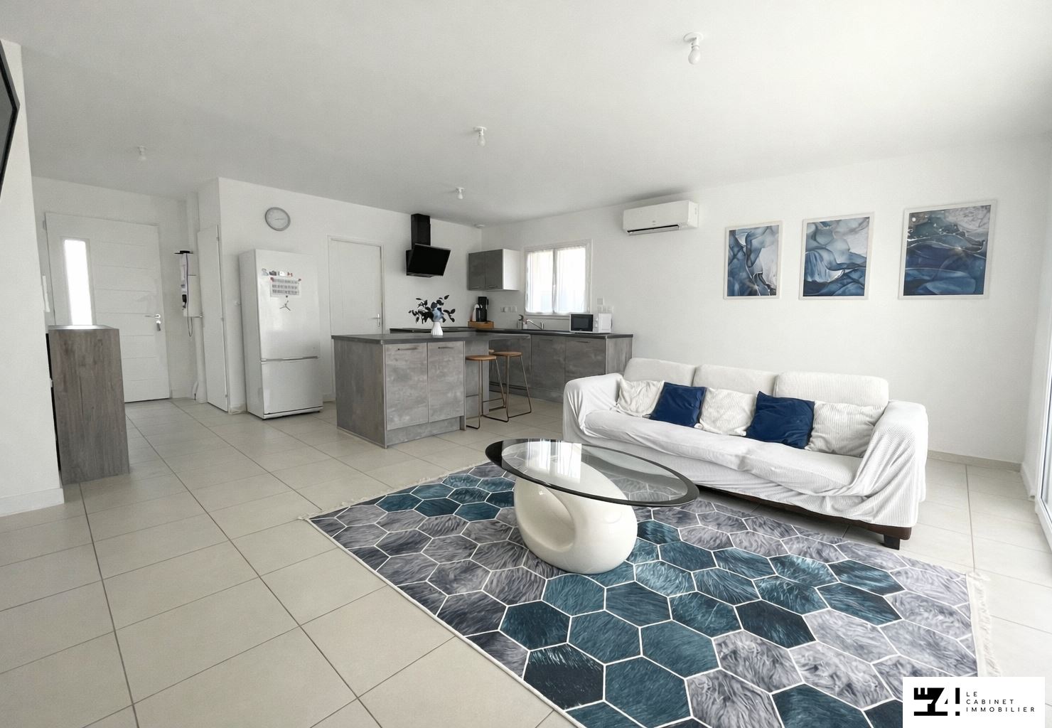 Implantée sur un terrain entièrement clôturé de 437 m², cette maison moderne dispose dune surface habitable de 86,92 m², agencée avec soin pour allier fonctionnalité et bien-être. Dès lentrée, vous serez séduit par une lumineuse pièce de vie, idéale pour vos moments en famille ou entre amis, accompagnée dune cuisine contemporaine, aménagée et équipée. Dans la continuité de cette partie jour, une buanderie pratique et un WC indépendant apportent un véritable confort au quotidien.