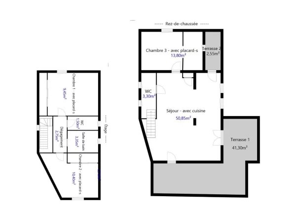 Sur deux niveaux, la maison se compose comme suit :