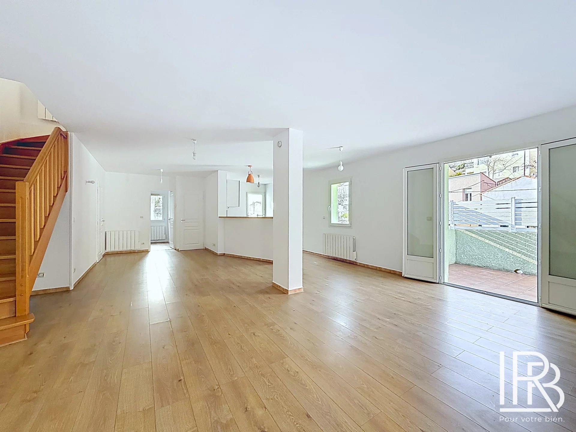 Implantée sur un terrain en restanque, au format volontairement plus étroit, l’extérieur offre un potentiel d’aménagement à exploiter selon vos envies.