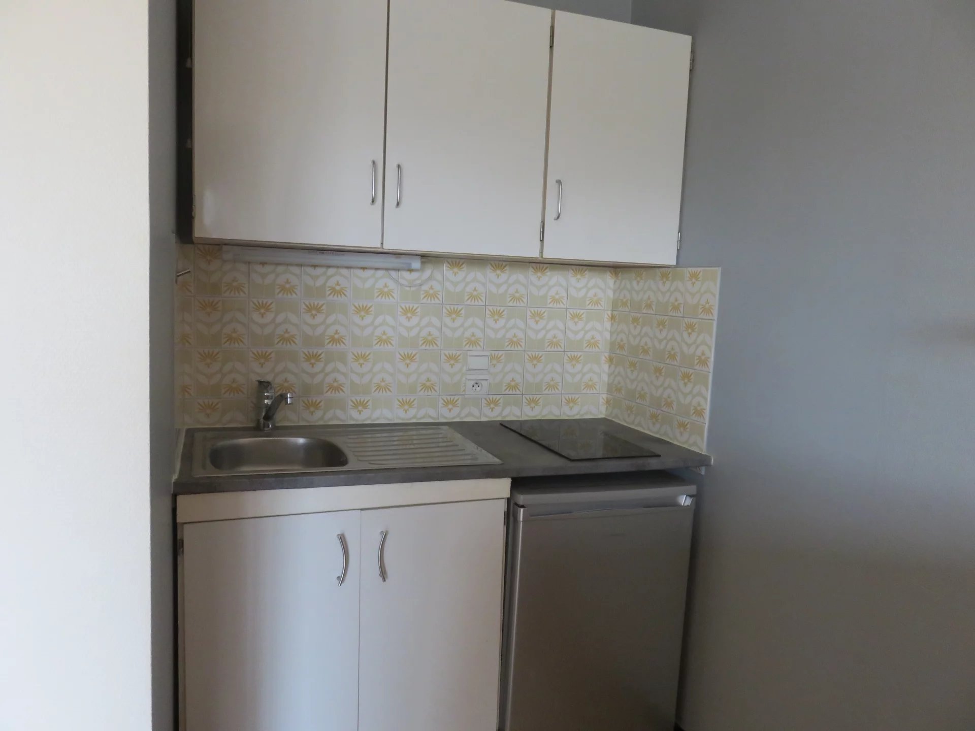 L’appartement se compose d’une entrée avec placard, d’une pièce de vie lumineuse avec coin cuisine (kitchenette) ouvrant sur un balcon (Ouest), ainsi que d’une salle de bain avec WC. Belle vue dégagée.